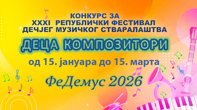 ГРАДСКО ТАКМИЧЕЊЕ СОЛО ПЕВАЧА И МАЛИХ ВОКАЛНИХ САСТАВА (ДУЕТИ, ТЕРЦЕТИ И КВАРТЕТИ) УЧЕНИКА ОСНОВНИХ ШКОЛА БЕОГРАДА «ЗЛАТНА СИРЕНА» 2026. II КОНЦЕРТ ЖАНР: ИЗВОРНА НАРОДНА ПЕСМА в)ДОМАЋА г)СТРАНА (I, II, III,и IV категорија) 16. […]
