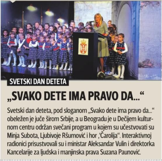 БЛИЦ – “Свако дете има право на…” – 21/11/2016 Posted on 21/11/201621/11/2016 БЛИЦ – “Свако дете има право да…” – 21/11/2016 Posted in Press Clipping and tagged dkcb, ДКЦБ.