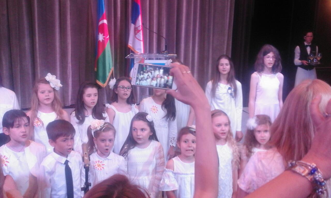 Вокална група “Нађи своју звезду”, вокални педагог Снежана Деспотовић на прослави Дана државности Азербејџана у хотелу Хајат Вокална група је извела нашу и азербејџанску националну химну.