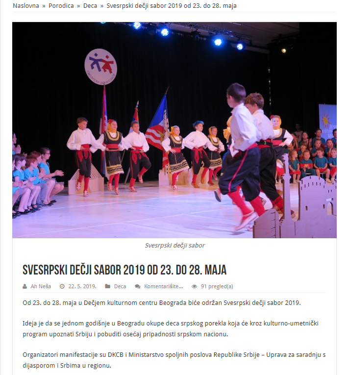 Дан у Београду – Свесрпски дечји сабор 2019 од 23. до 28. маја Posted on 23/05/201923/05/2019 Posted in Press Clipping and tagged decji, sabor, svesrpski, дечји, сабор, свесрпски.