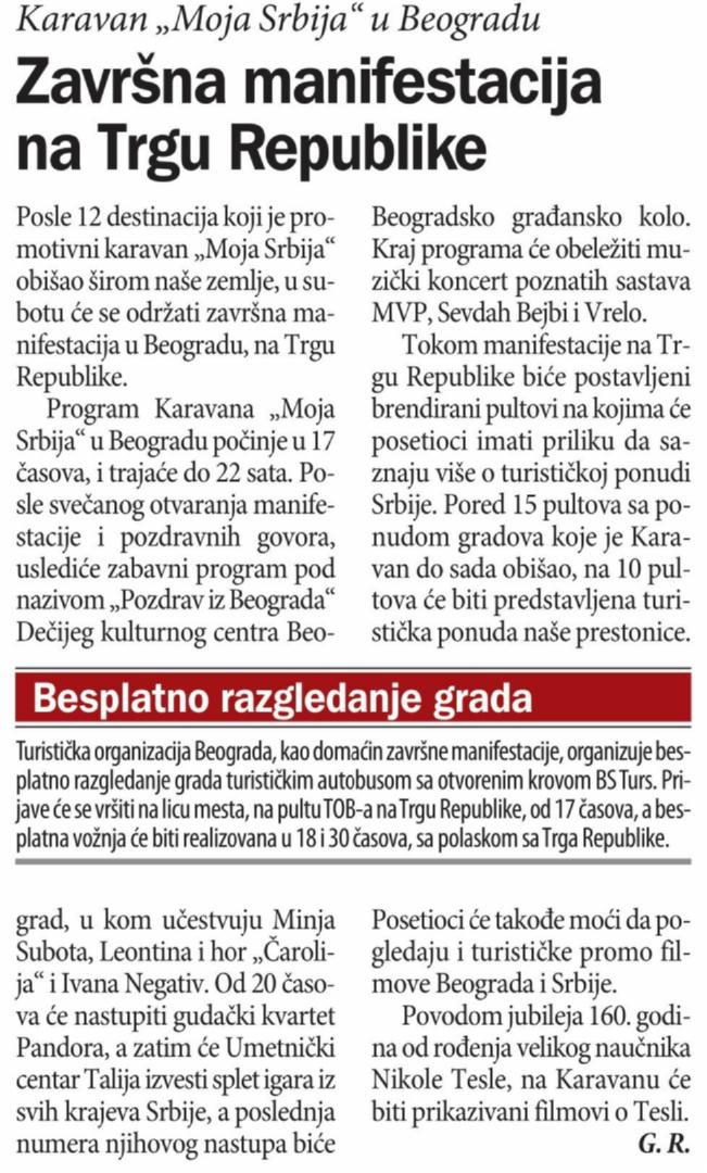 ДКЦБ програм под називом “Поздрав из Београда” у оквиру Каравана “Моја Србија”