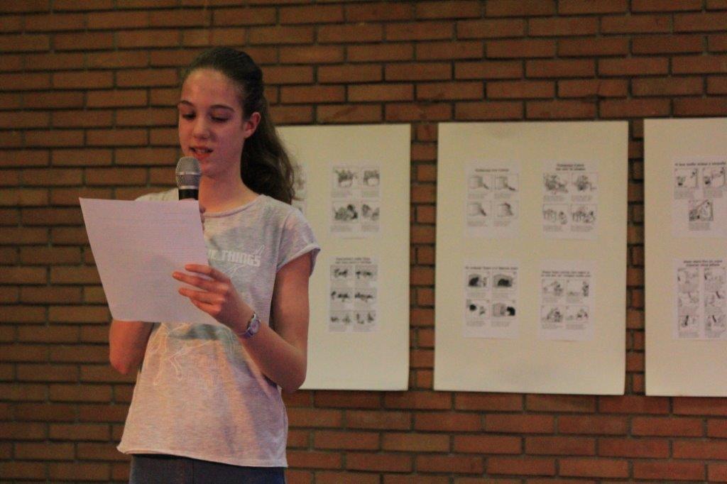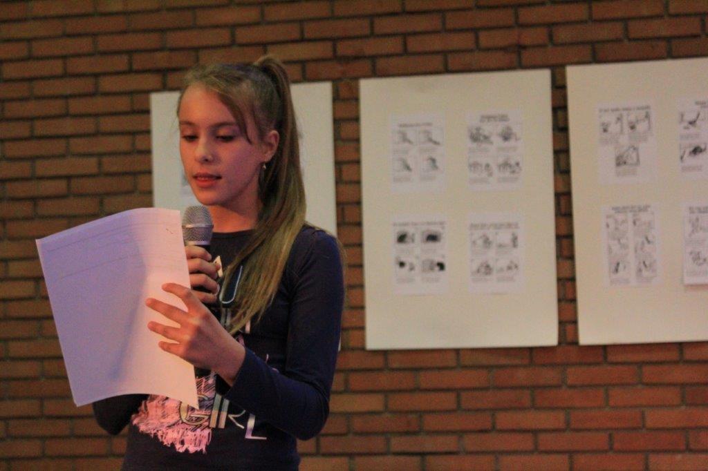 Литерарно дружење започели смо песмом Бране Цветковић „Две печурке“ коју је извела Сара Урошевић, ученица школе 20. октобар и чланица студија глуме „Бајка“.