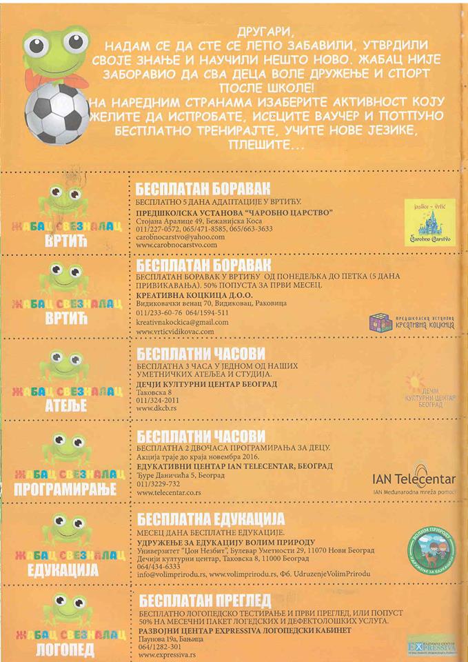 Купите часопис Жабац свезналац како бисте добили ваучер за један од уметничких студија и атељеа Дечјег културног центра Београд!