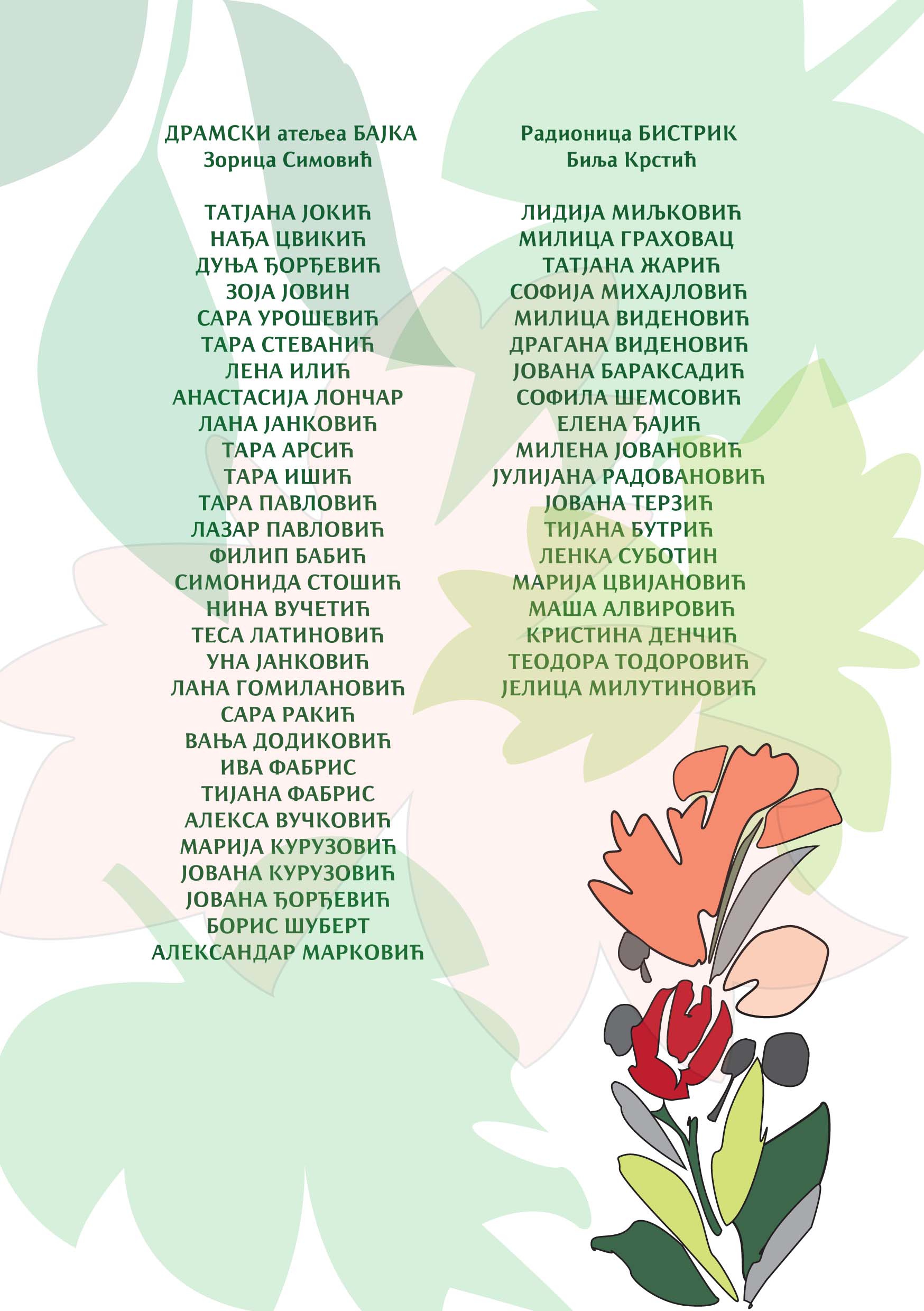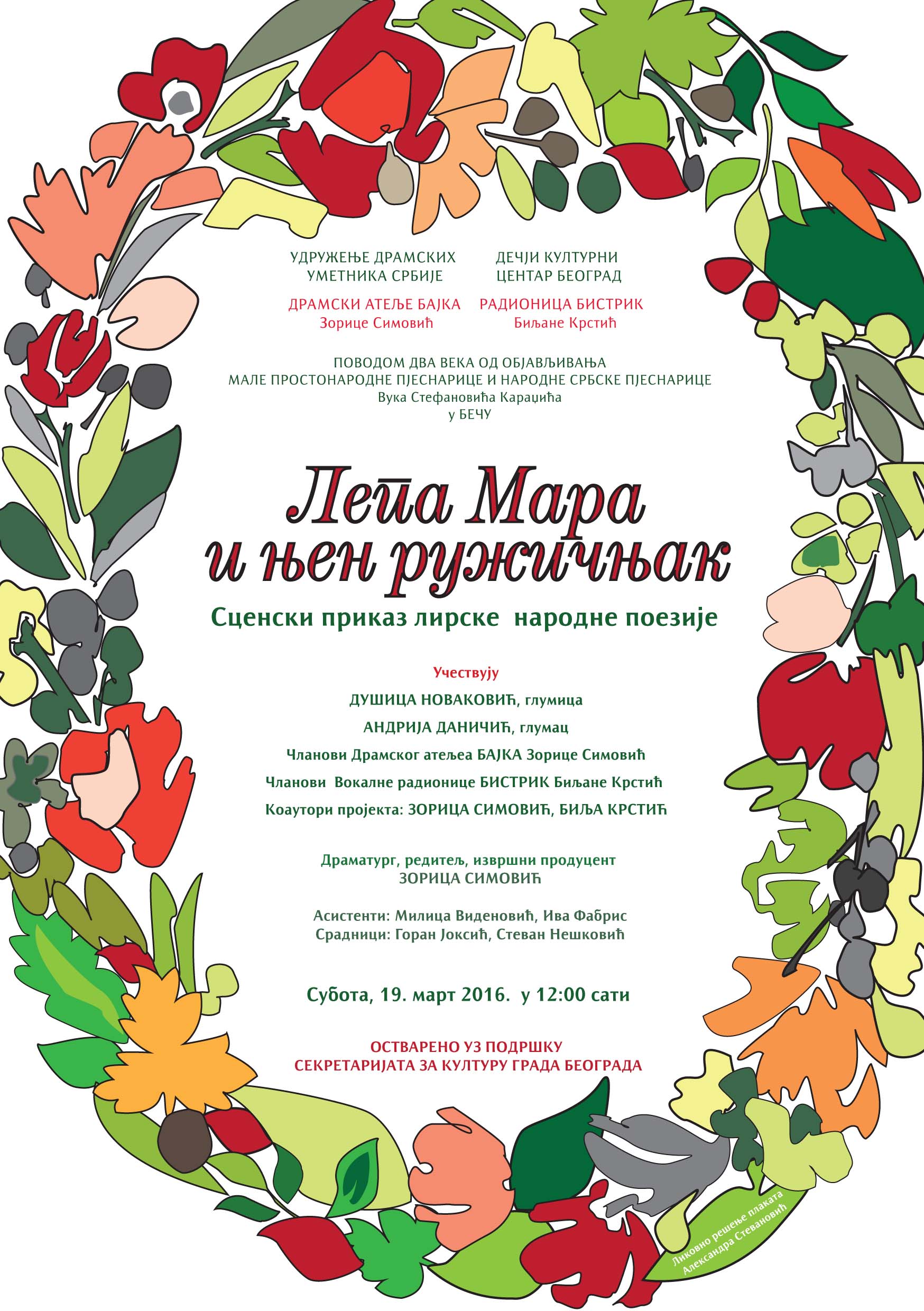 Поводом два века од објављивања Мале простонародне пјеснарице и народне србске пјеснарице Вука Стефановића Караџића у Бечу. Аутор овог музичко сценског програма је драматург, редитељ и извршни продуцент Зорица Симовић, а у програму учествују глумци Душица Новаковић и Андрија Даничић као и чланови Драмског атељеа „Бајка“ Зорице Симовић и чланови Вокалне радионице „Бистрик“ Биљане Крстић.