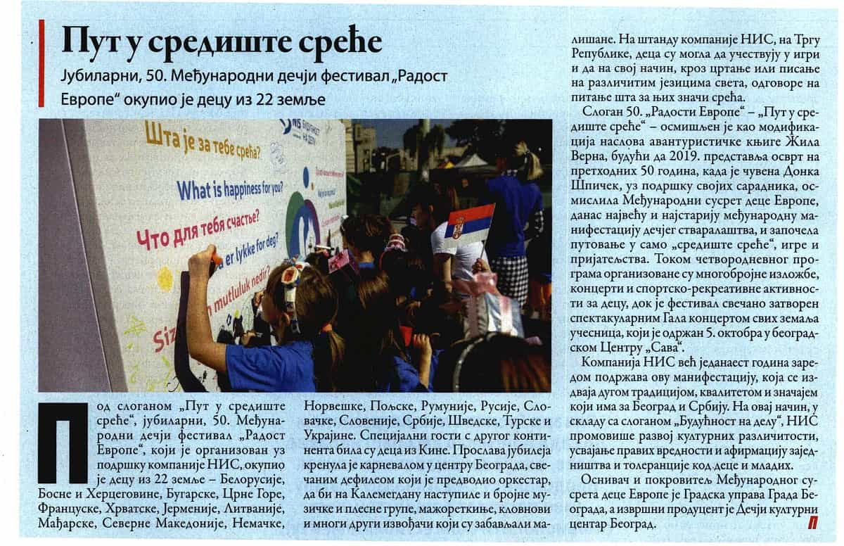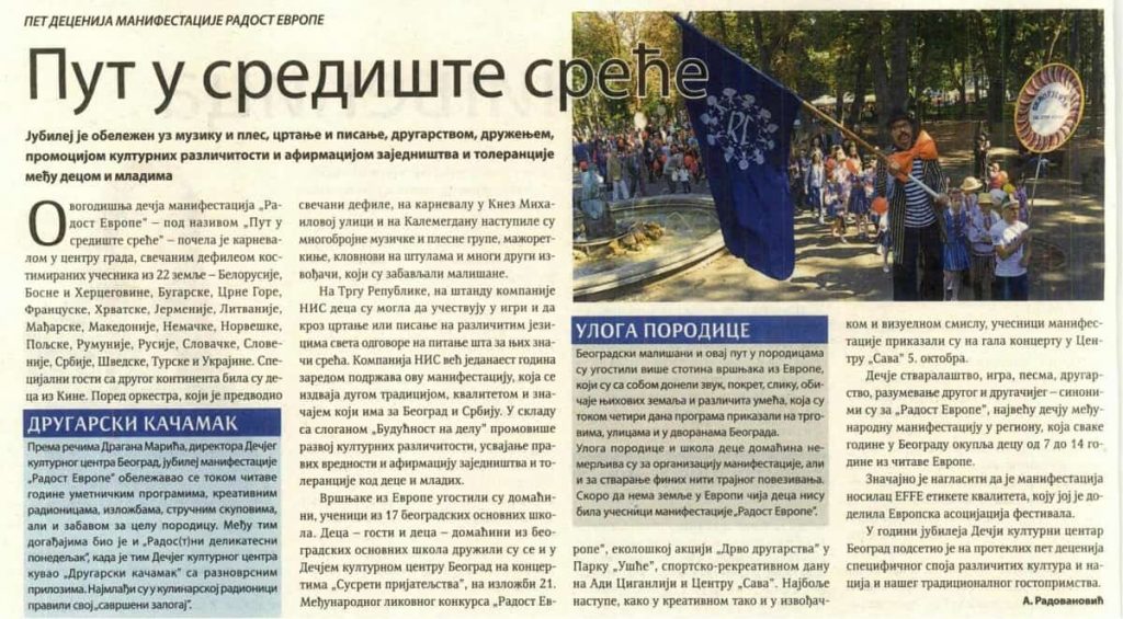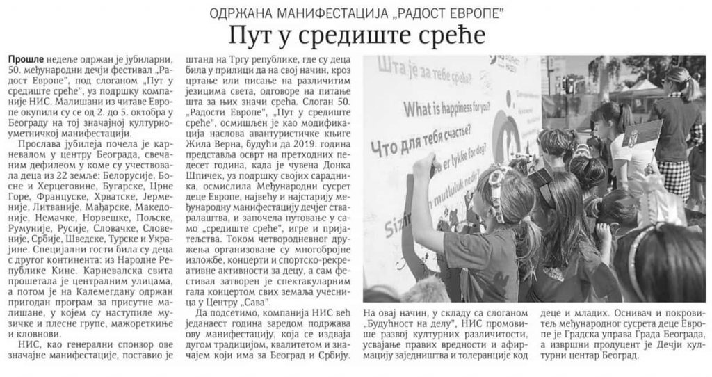 Медији о педесетој манифестацији Радост Европе Posted on 15/10/201905/03/2020 Posted in Press Clipping, Радост Европе.