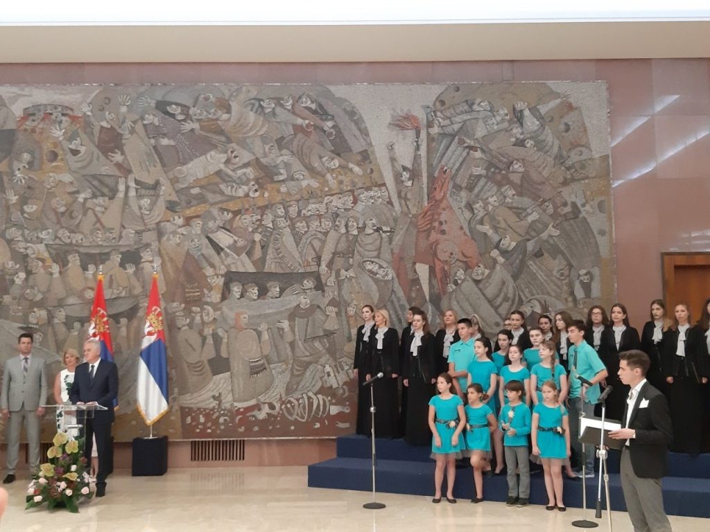 Уручење похвалница и лаптоп рачунара најуспешнијим ученицима завршних разреда основних и средњих школа Србије за школску 2018/19. годину. Палата ,,Србија”, 10.07.2019. године.
