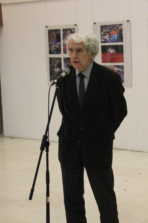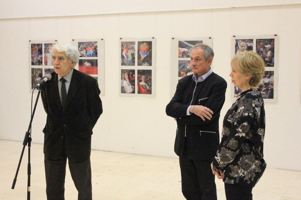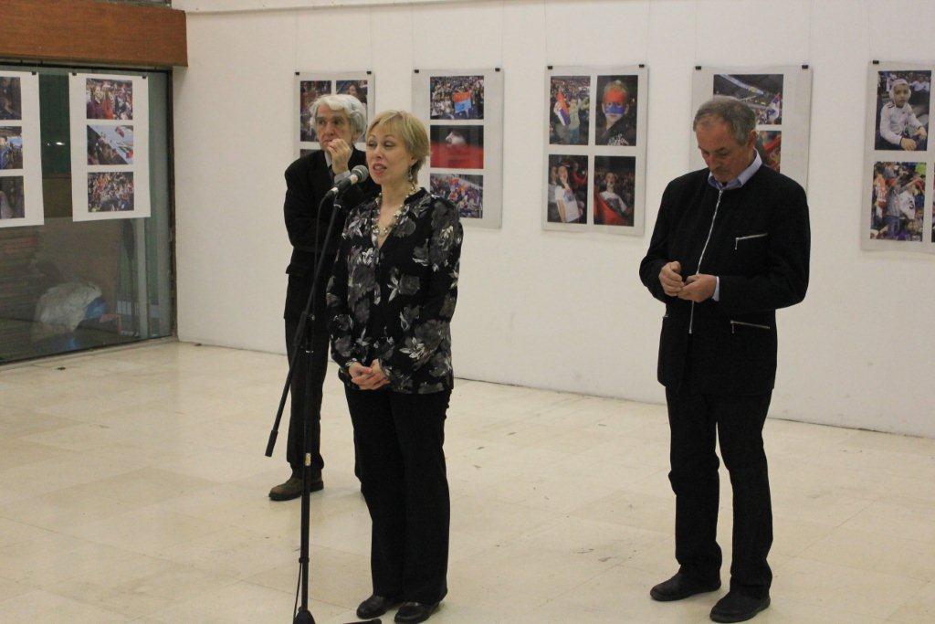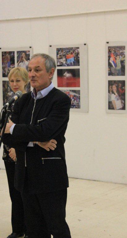 Бранко Пелиновић воли децу, јер је и он један велики дечак. Воли да се игра, да уочава занимљиве детаље, лепоту и радост и да од најобичнијих ствари направи врло необича виђења. Прилика му се пружила када је извештавао са великог спортског такмичења – Европског првенства у ватерполу које се одржавало у Београду од 10. до 23. јануара ове године. Његове фотографије бележе узбудљиве тренутке, али не у базену, него на трибинама. Из дана у дан бележио је најмлађе навијаче који на посматрача остављају снажан дојам. Присутнима је нешто више о томе рекао професор Чедомир Васић, који је и отворио изложбу.