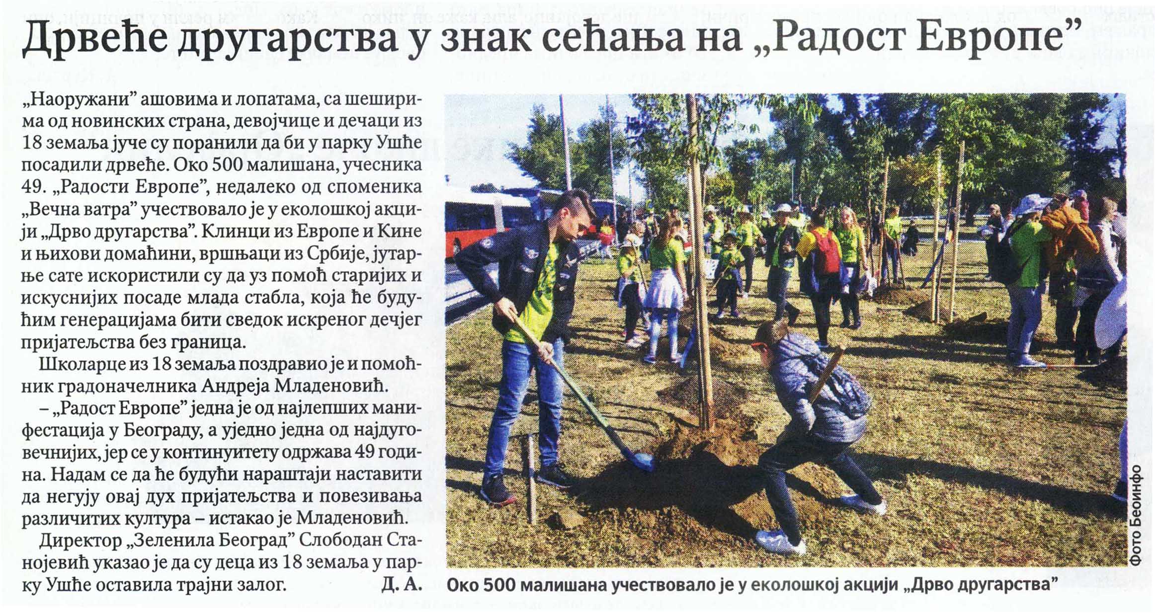 ПОЛИТИКА – Дрвеће другарства у знак сећања на „Радост Европе”