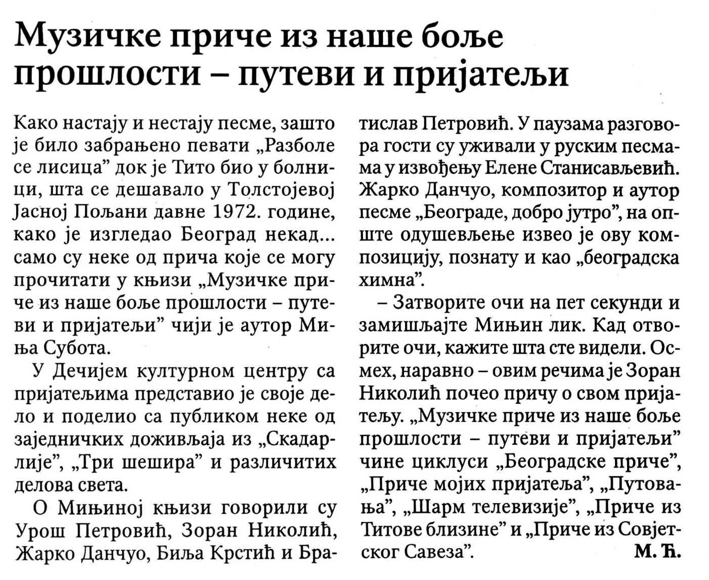 ПОЛИТИКА – Музичке приче из наше боље прошлости – путеви и пријатељи Posted on 01/03/201901/03/2019 Posted in Press Clipping and tagged dkcb, minja, subota, ДКЦБ, миња, субота.