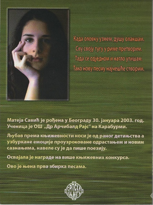 У среду , 18.јануарa у 20.00 часова у Малој сали ће се одржати промоција збирке песама “Срце срцу пише” ученице ОШ „Арчибалд Рајс“ Матеје Савић, дугогодишње чланице Драмског студија. У читању песама ће јој помоћи њени другари из Драмског студија ДКЦБ-а. Специјални гост ће бити Слободан Станишић, познати дечји писац и председник жирија на литерарним конкурсима које организује Дечји културни центар Београд.