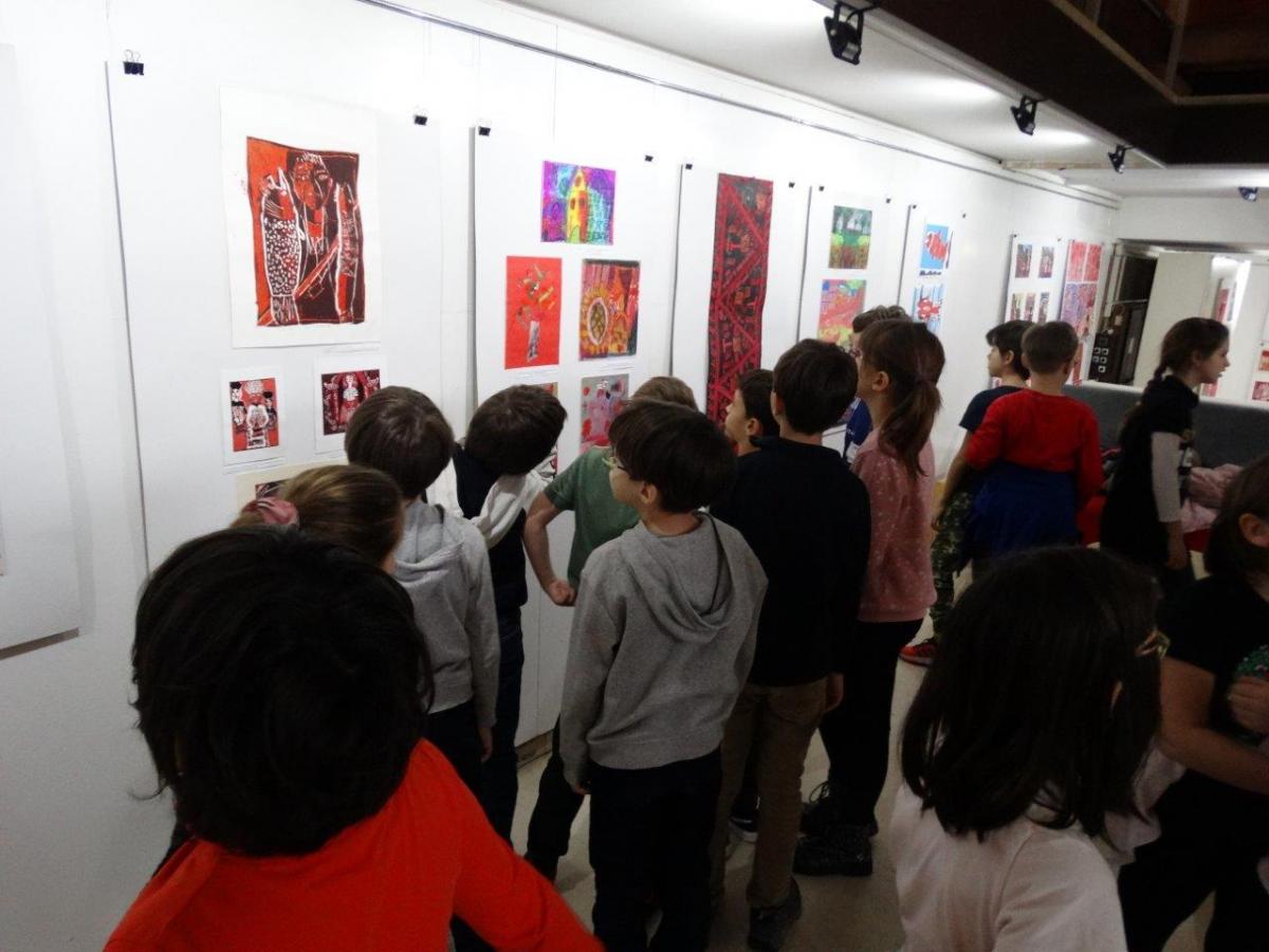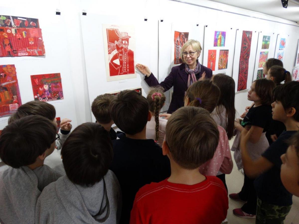 Ученици трећег разреда основне школе “Краљ Петар Први” из Београда биси су на отварању међународне изложбе “Црвено волим те црвено” Центра за ликовно васпитање деце и омладине Војводине и учествовали су у радионици “Бело на бело”.