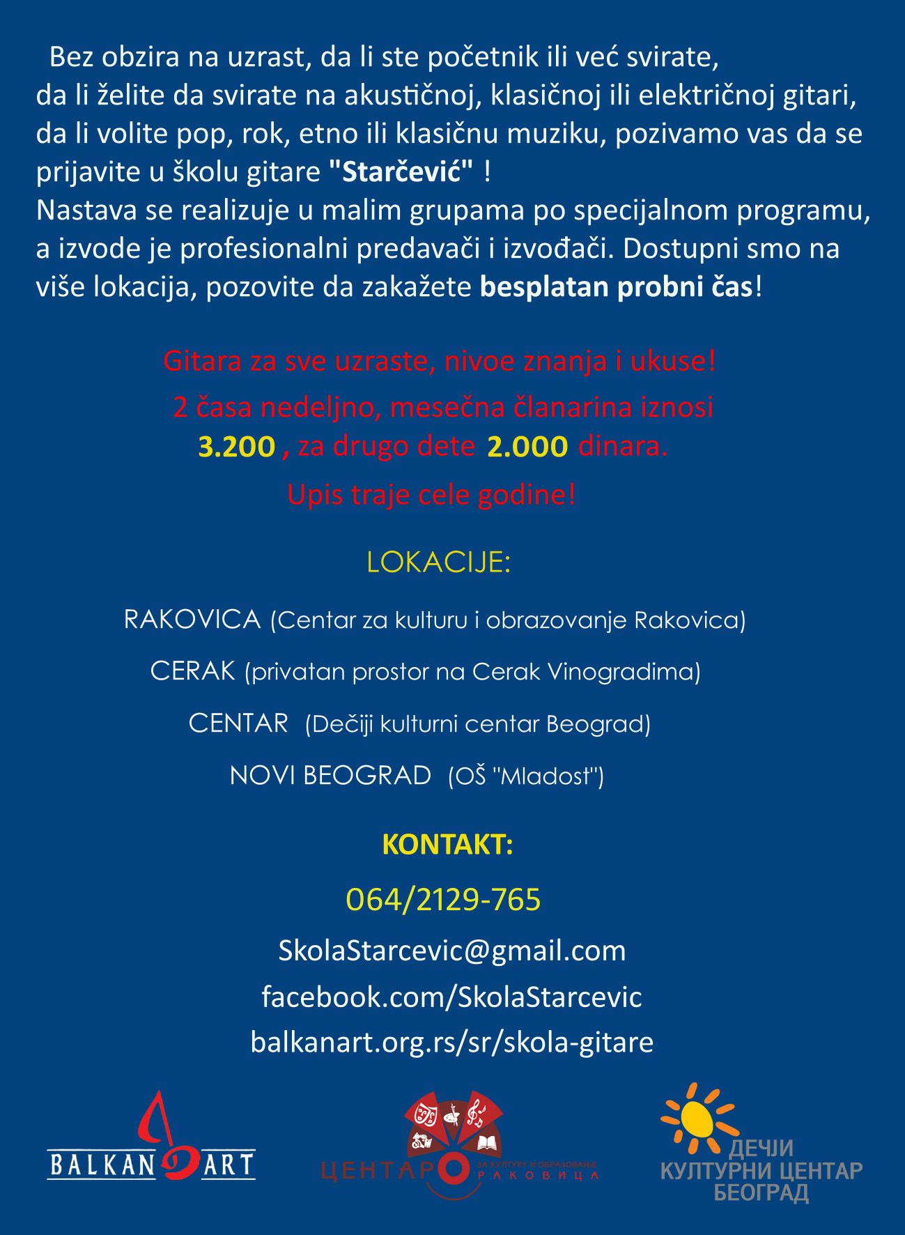 Школа гитаре “СТАРЧЕВИЋ” у Дечјем културном центру Београд Posted on 20/09/201720/09/2017 Posted in Обавештења and tagged dkcb, skola gitare, ДКЦБ, школа гитаре.