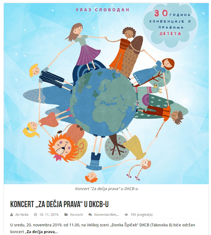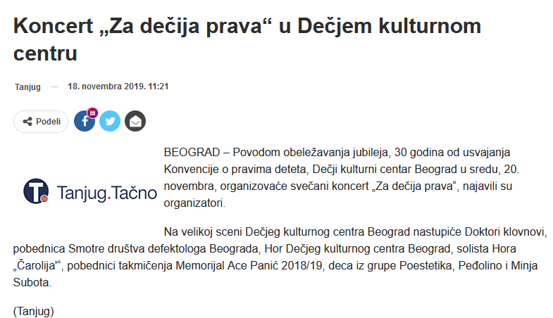 Штампани и интернет медији о концерту „За дечја права” Posted on 19/11/201919/11/2019 Posted in Uncategorized.