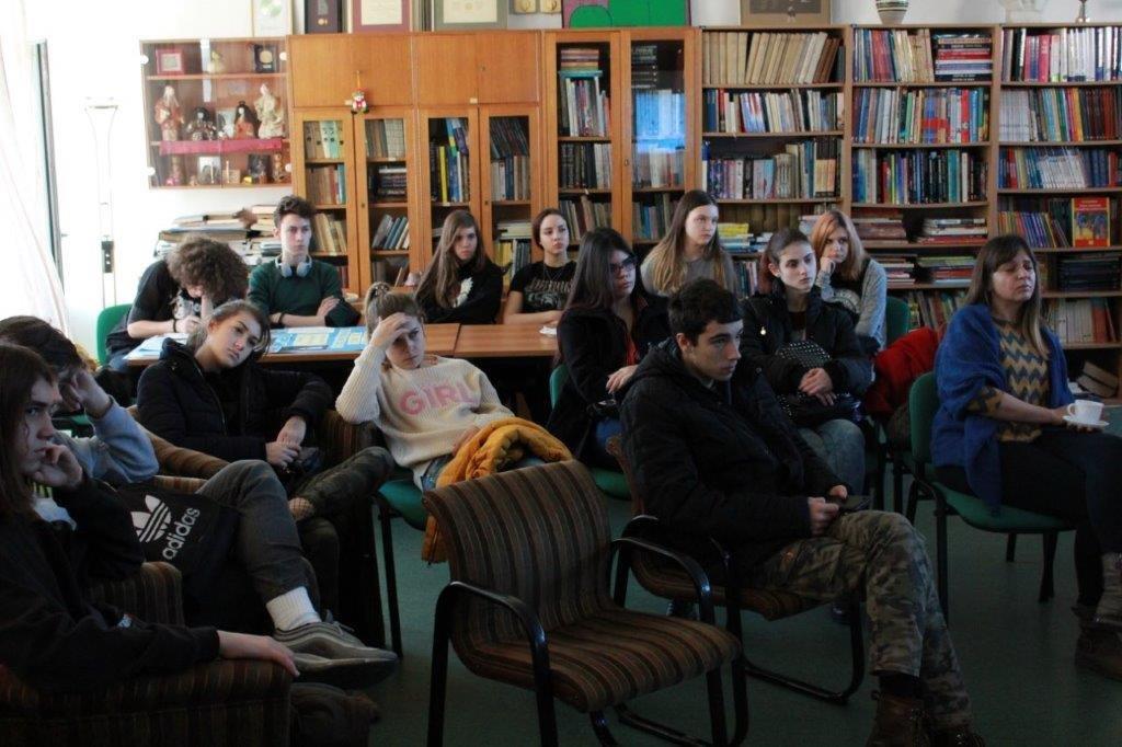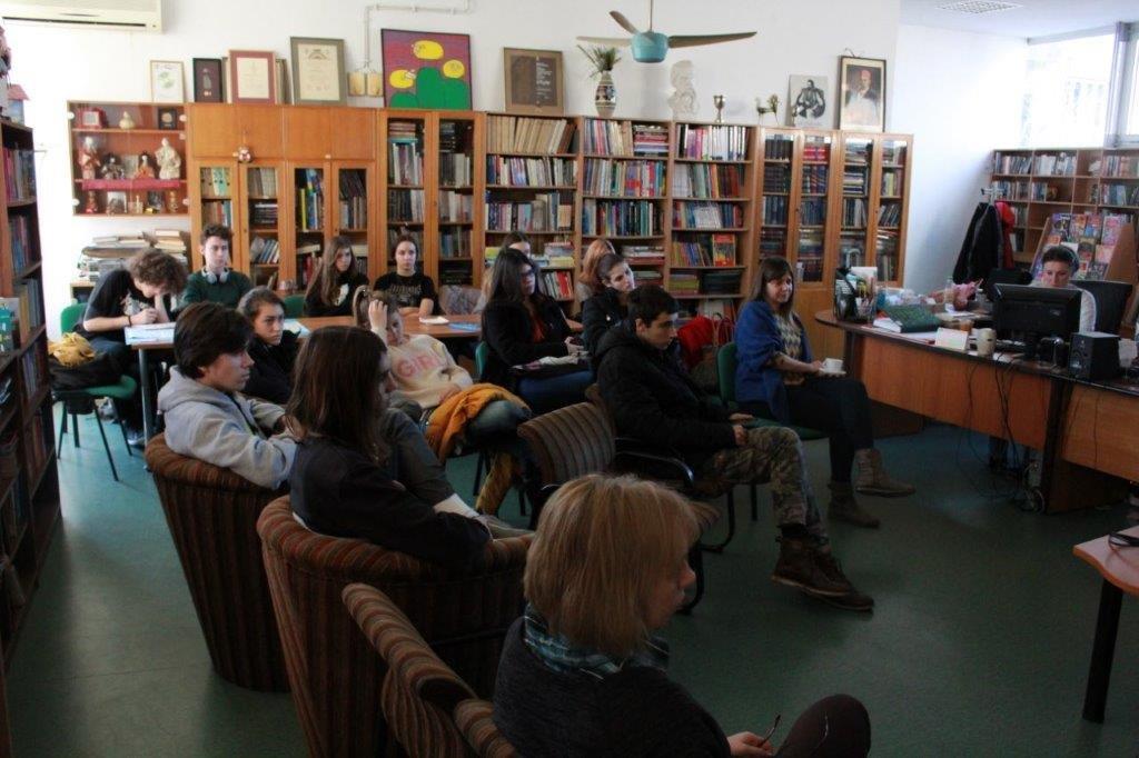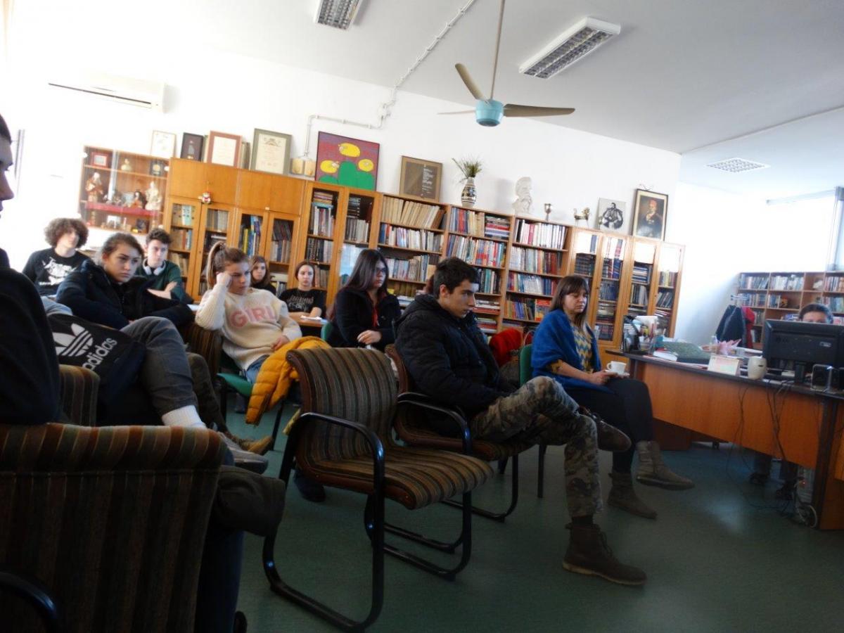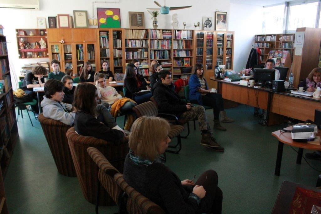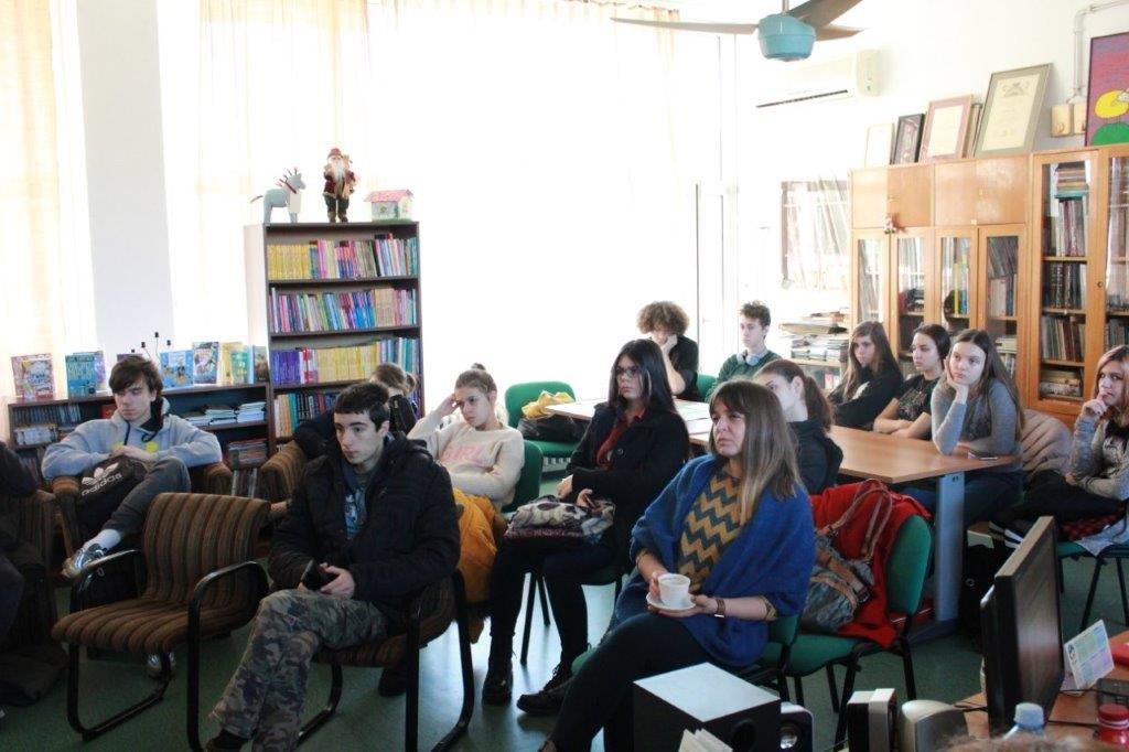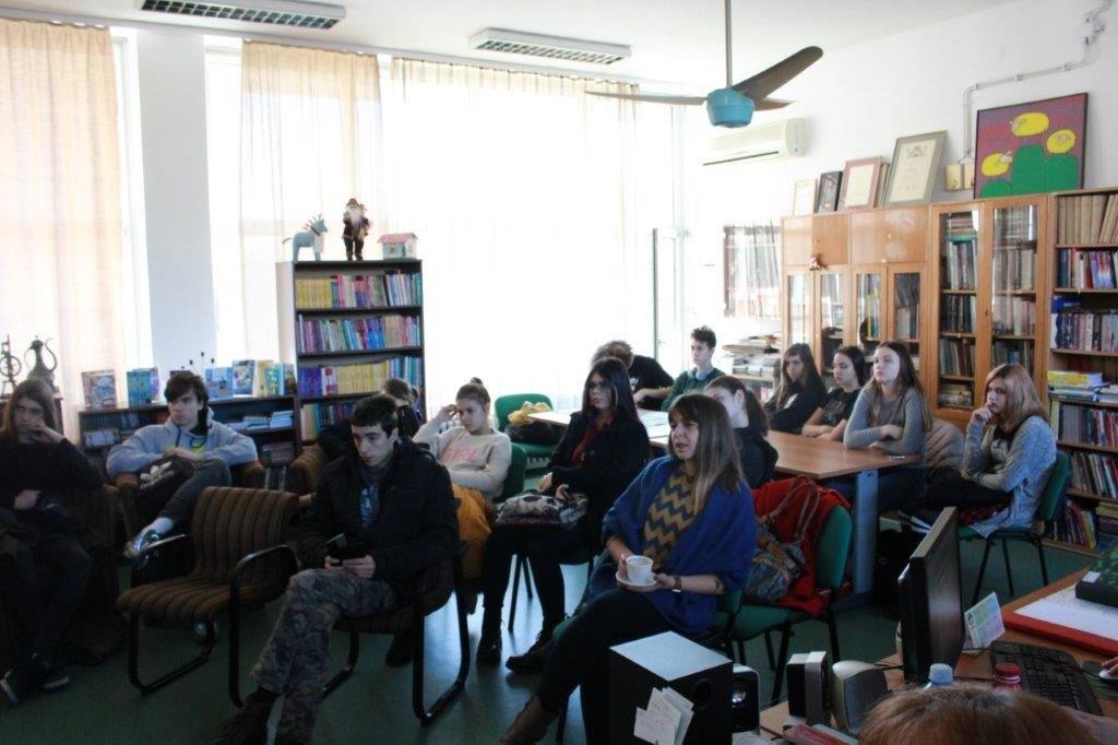Зоран Стефановић, писац и историчар поп културе одржао је необично и врло занимљиво предавање које је присутне оставило без даха. Кроз мултидисциплинарну синтезу друштвених, природних и хуманистичких наука присутне средњошколце из Школе за дизајн, провео је од пећинског сликарства до Терминатора, од спартанског начина живљења до Господара прстенова, објашњавајући популарну културу и уметност. Млади слушаоци су нетремице пратили приповедача, показавши велико интересовање и радозналост.