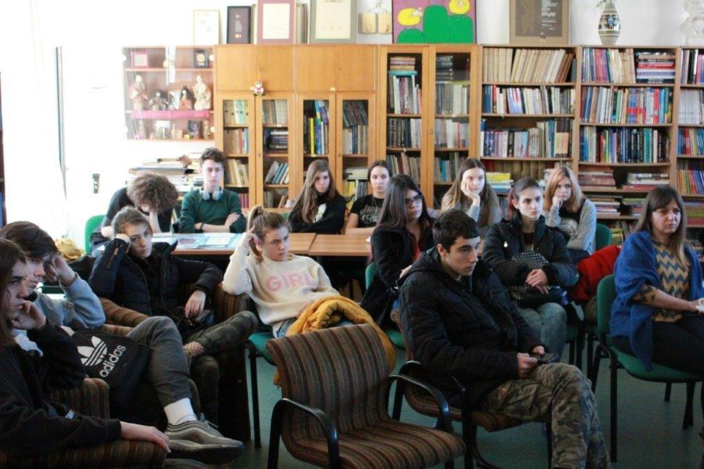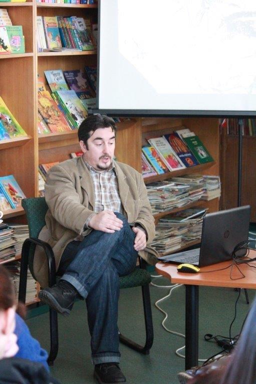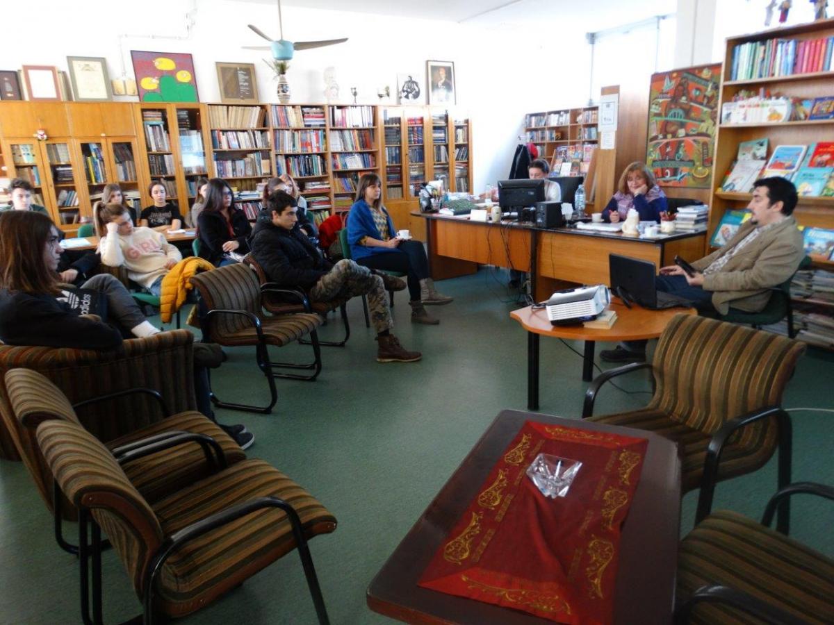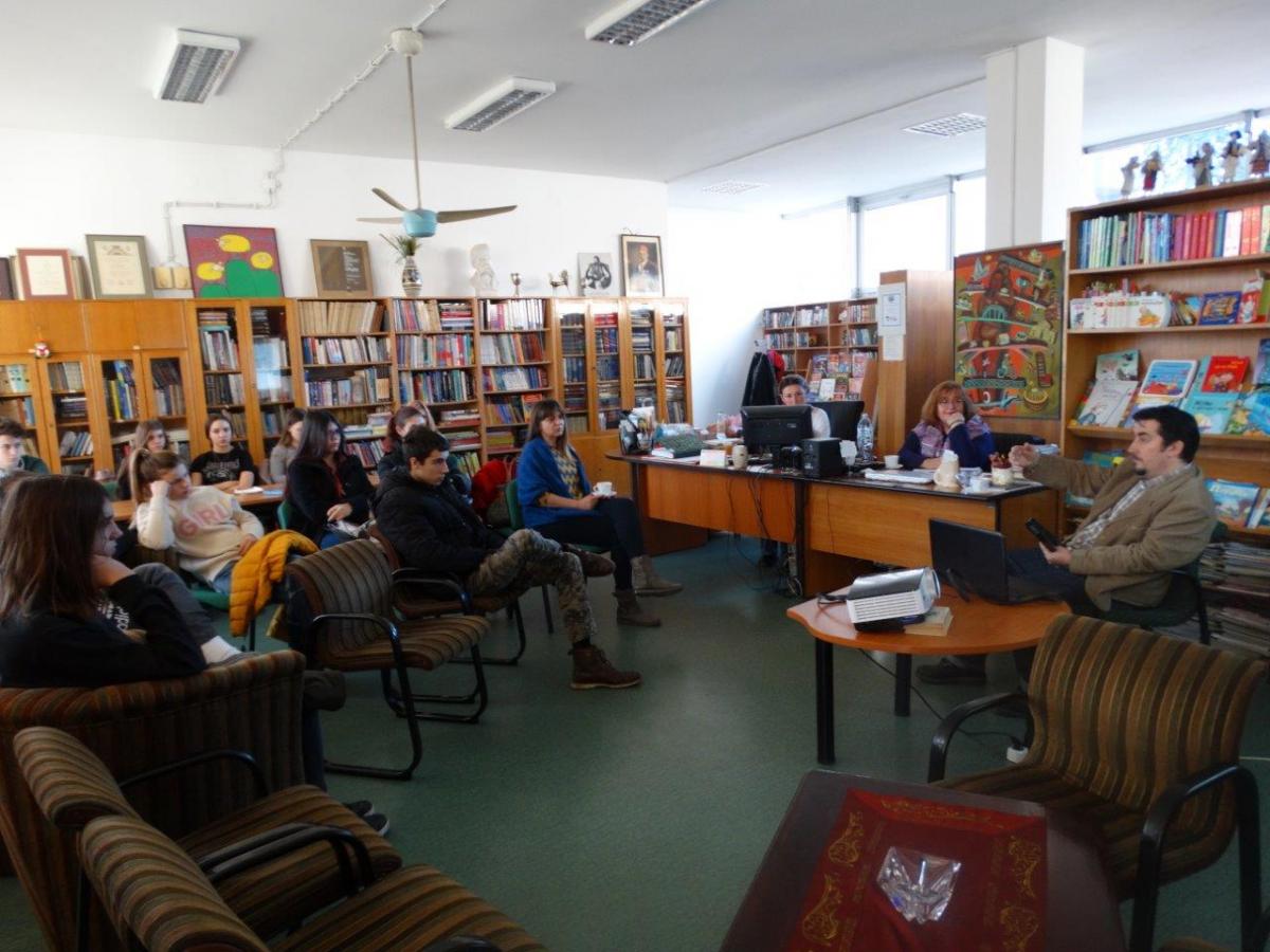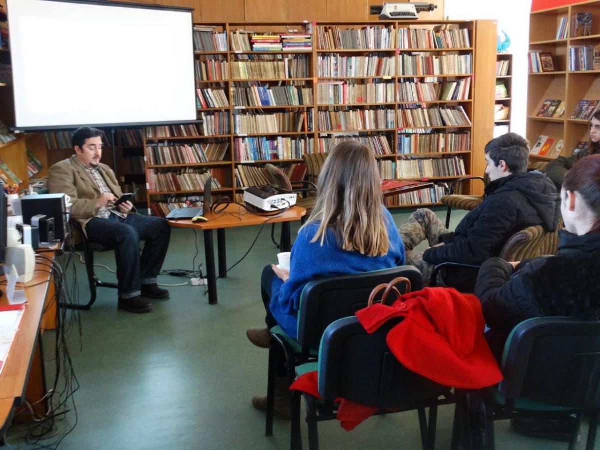 Зоран Стефановић, писац и историчар поп културе одржао је необично и врло занимљиво предавање које је присутне оставило без даха. Кроз мултидисциплинарну синтезу друштвених, природних и хуманистичких наука присутне средњошколце из Школе за дизајн, провео је од пећинског сликарства до Терминатора, од спартанског начина живљења до Господара прстенова, објашњавајући популарну културу и уметност. Млади слушаоци су нетремице пратили приповедача, показавши велико интересовање и радозналост.