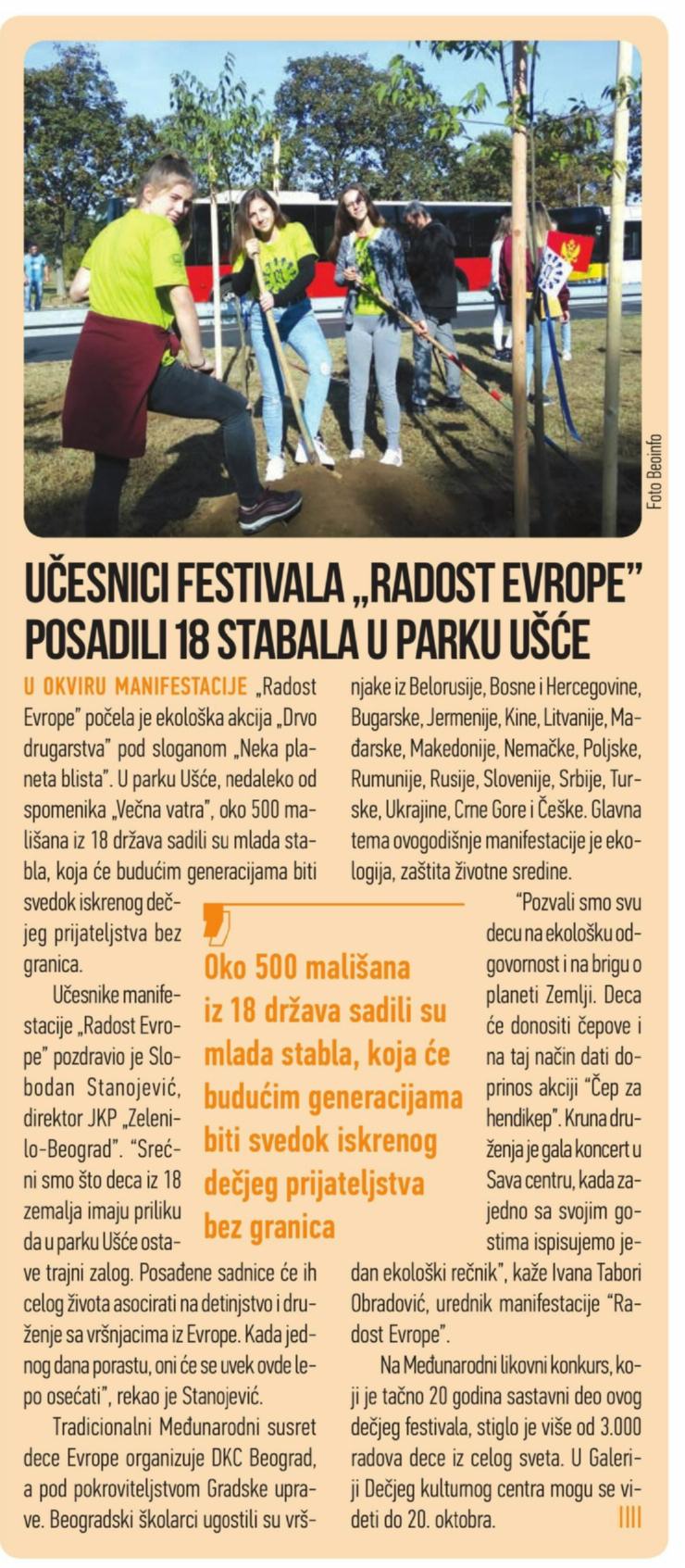 24 Сата – Учесници фестивала „Радост Европе” посадили 18 стабала у парку Ушће