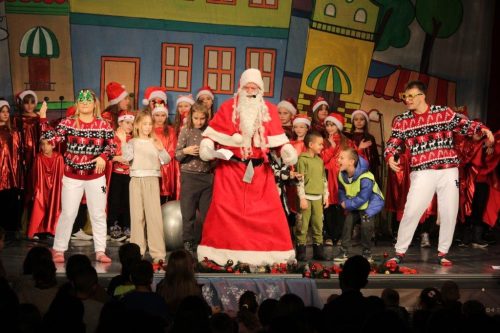 Наши глумци Јана Рокић, Никола Тодоровић, Горан Јоксић и Пеђолино заједно су са хором основне школе Јелена Миловановић и њиховом наставницом Анжелом Недељковић певали најлепше песме за децу, решавали загонетке и помагали нашем збуњеном Деда Мразу да се подсети који је његов најважнији задатак у новогодишњој ноћи.
