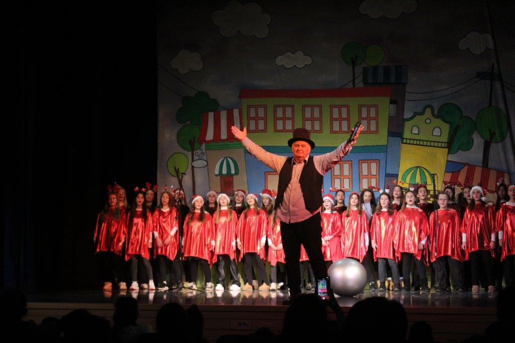 На сцени су им се придружили чланови хора наставнице Марије Мишић из основне школе Лаза Саватић који су својим осмесима и гласовима улепшали новогодишњи караван.