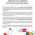 Dečji kulturni centar Beograd vas poziva da 9. februara u 18 časova, u svečanoj sali prisustvuje besplatnoj tribini Muzika kao podrška mentalnom razvoju dece.