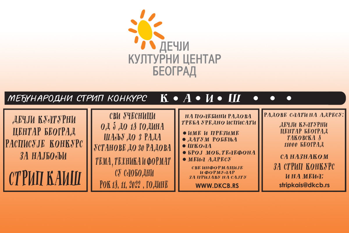У петак 17. јуна у Дечјем културном центру Нови Сад биће отворена изложба селектованих радова Међународног конкурса СТРИП КАИШ. Жеља нам је да представимо радове деце и младих узраста од од 5 до 18 година […]