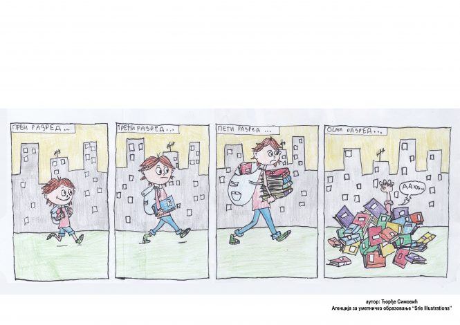 МЕЂУНАРОДНИ КОНКУРС СТРИП – КАИШ 2021. Рок за приспеће радова је продужен до 18. новембра 2021. године. Другонаграђен рад Невене Маричић, 11 година на Стрип каиш конкурсу 2019. годинe