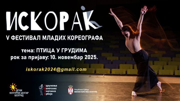 ФЕСТИВАЛ МЛАДИХ КОРЕОГРАФА „ИСКОРАК״ Тема: ПТИЦА У ГРУДИМА Рок за пријаву 10. 11. 2025. Рок за пропратни материјал и техничке захтеве 24. 11. 2025. И-мејл: iskorak2024@gmail.com Дечји културни центар Београд (ДКЦБ), уз подршку Удружења […]