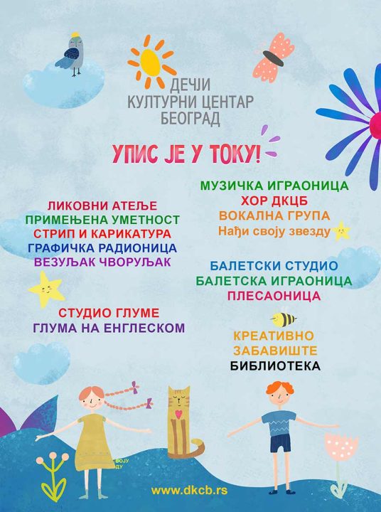 Саопштење за медије Балет, сликање, вајање, глума, музика… Са почетком нове школске године почиње упис деце и младих у уметничке студије и атељее Дечјег културног центра Београд (Таковска 8). Од самог оснивања некадашњег Дома […]