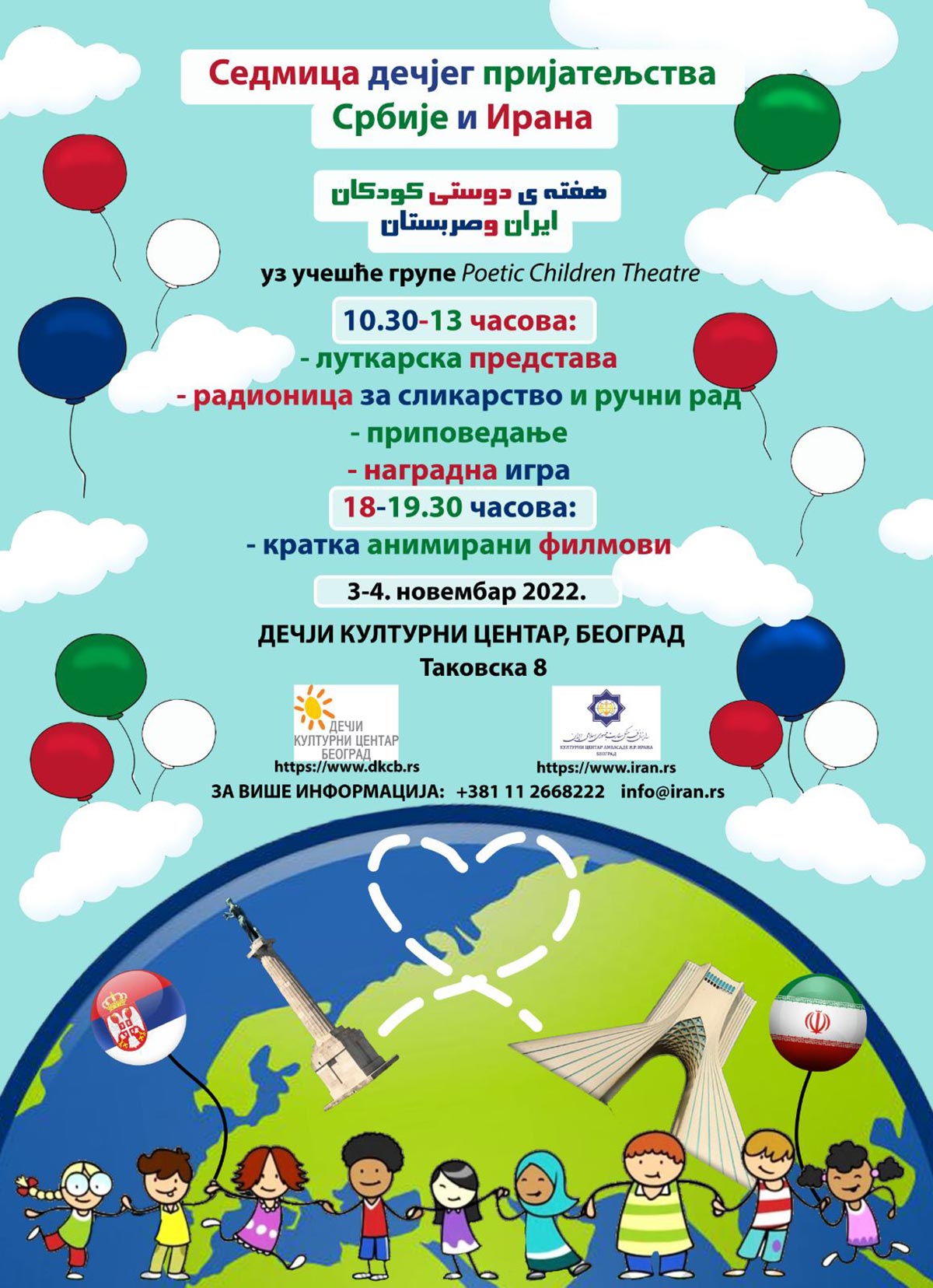 Догађај намењен деци под називом “Седмица дечјег пријатељства Србије и Ирана” који ће бити одржан 3. и 4. новембра са почетком у 10:30 у Дечјем културном центру Београд реализује се у сарадњи са Иранским […]