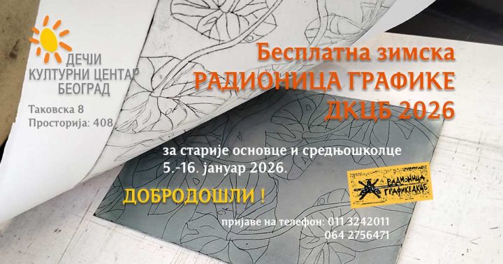 Радионица графике ДКЦБ – Зимски школски распуст 2026 Радионица графике намењена је старијим основцима и средњошколцима. Током радионице полазници ће упознати технике линореза, суве игле, бакрописа, акватинте и имати прилику да израде и […]