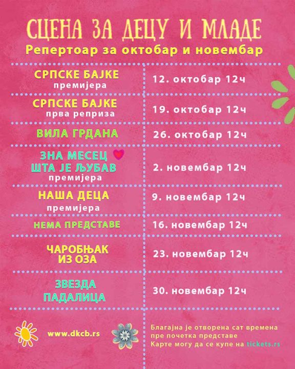 СЦЕНА ЗА ДЕЦУ И МЛАДЕ – РЕПЕРТОАР 2024 (октобар – новембар)