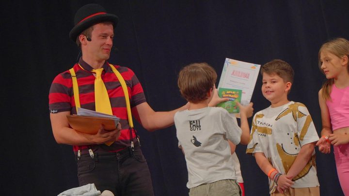 Последњег дана прве недеље ДКЦБ летњег кампа деца су уживала у радионицама покрета, музике, сликања, глуме, редизајна одеће, графике, стрипа и карикатуре и читања поезије. На крају дана, у великој сали „Донка Шпичек” деци су уручене дипломе за успешно завршен летњи камп, а програм су улепшали мађионичар и жонглер Филипино, који је својим триковима и веселим наступом измамио осмехе свима у сали.
