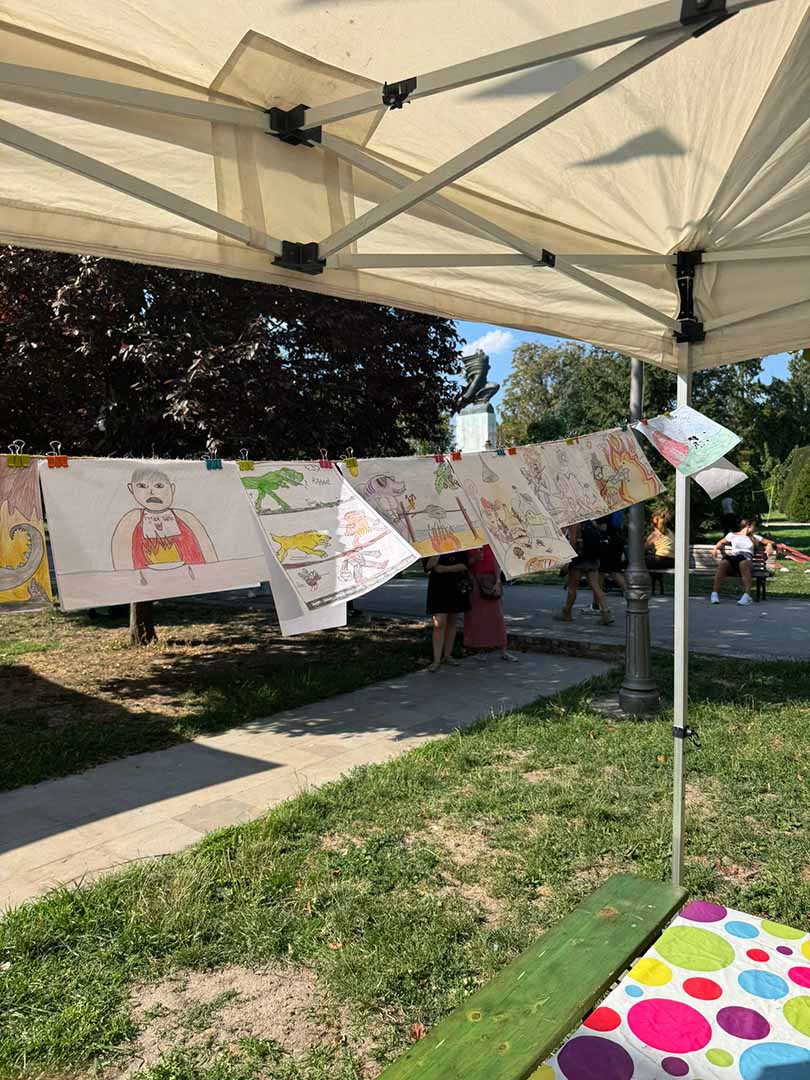И ова субота прошла је у знаку Дечјег културног центра Београд на Калемегдану. Наши педагози водили су радионице стрипа и карикатире и анимираног филма код фонтане Рибар од 16 до 20 часова у оквиру Београдског лета.