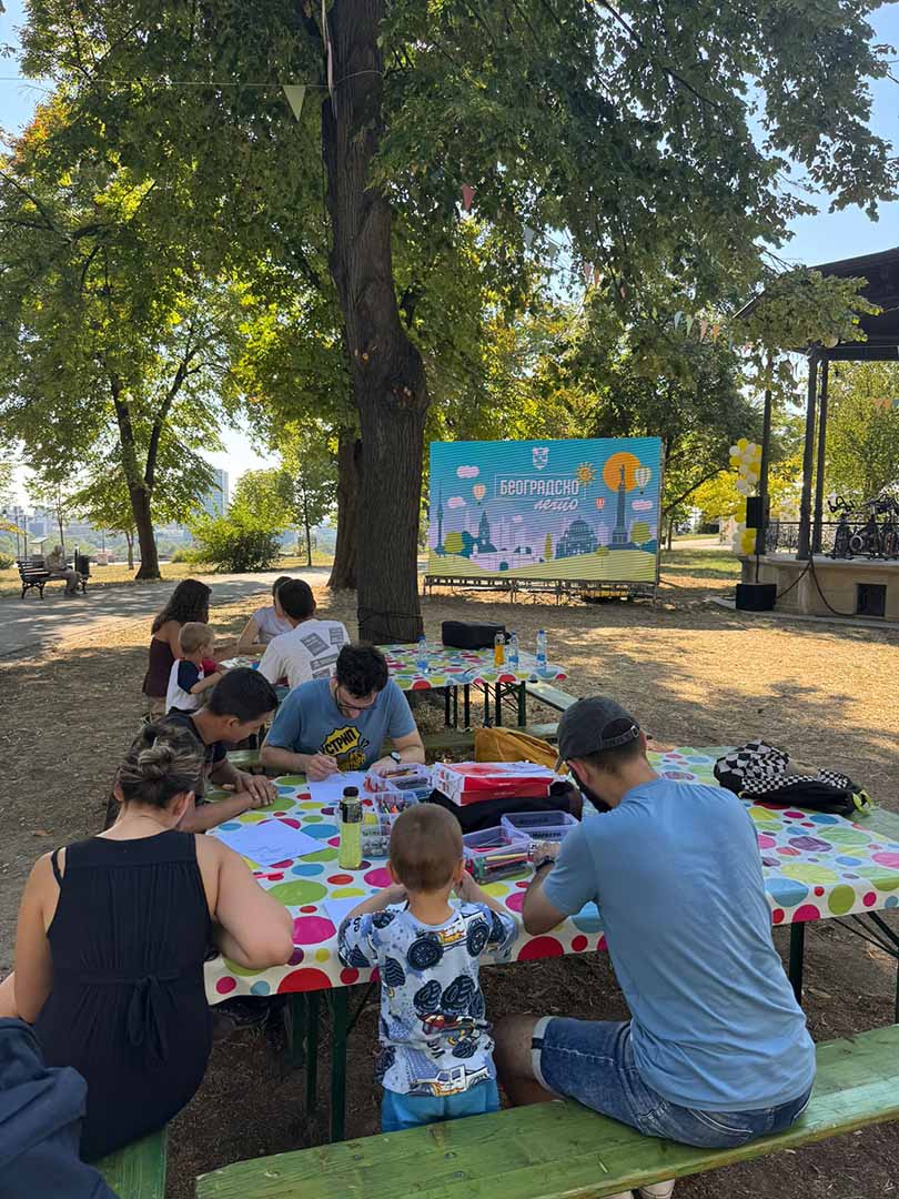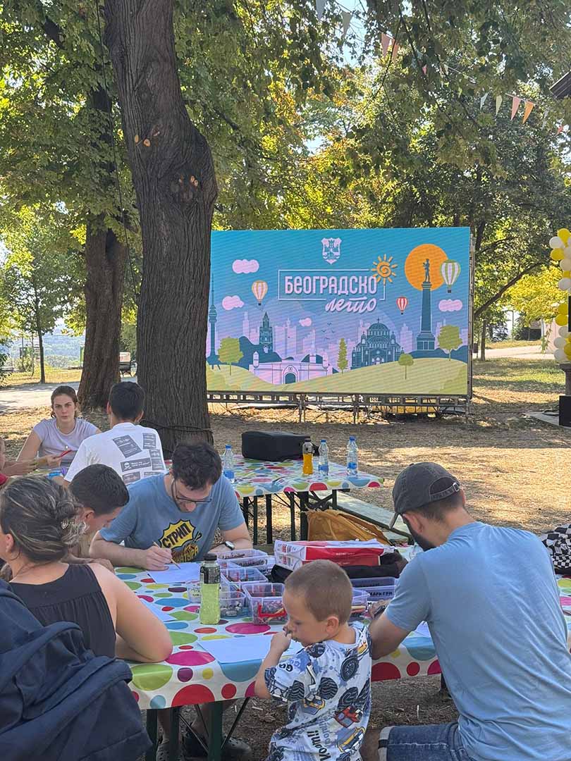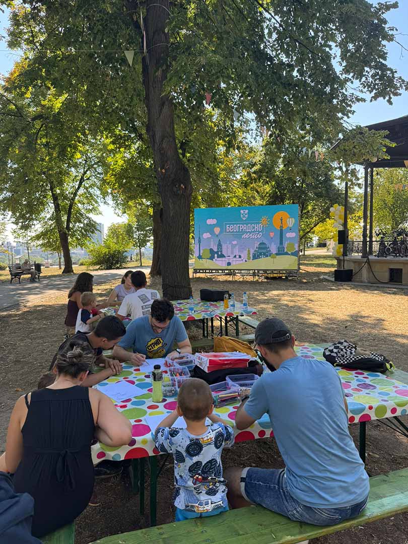 У оквиру Београдског лета на Калемегдану код фонтане Рибар Дечји културни центар Београд сваке суботе и недеље од 16 до 20 часова до краја лета има креативне радионице за децу. Иза нас је сунчани викенд. Високе температуре нису биле препрека да се београдски малишани окупе у великом броју и развијају своју машту заједно са нама. Сунце на Калемегдану. Сунце у очима деце. Сунце као симбол светлости, топлине и радости. Сунце – заштитни знак Дечјег културног центра Београд. Ништа није случајно.
