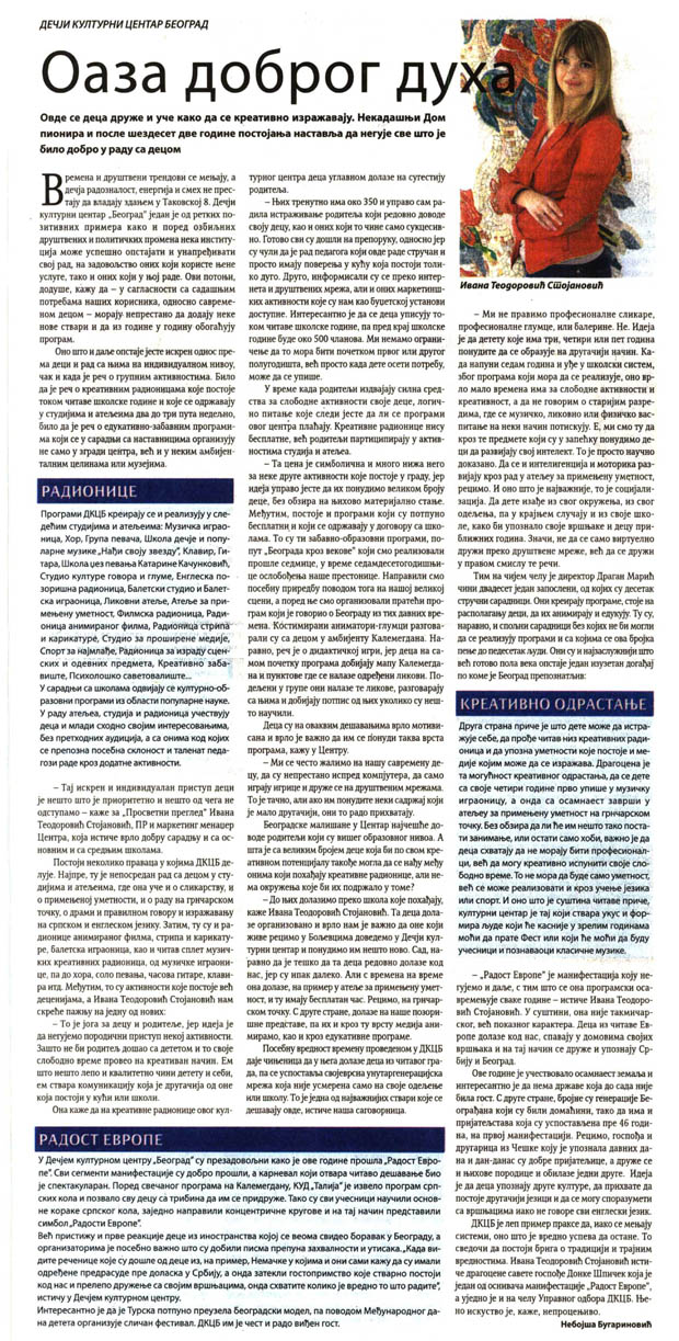 Nekadašnji Dom pionira i posle šezdeset dve godine postojanja nastavlja da neguje sve što je bilo dobro u radu sa decom. Ovde se deca druže i uče kako da se kreativno izražavaju.