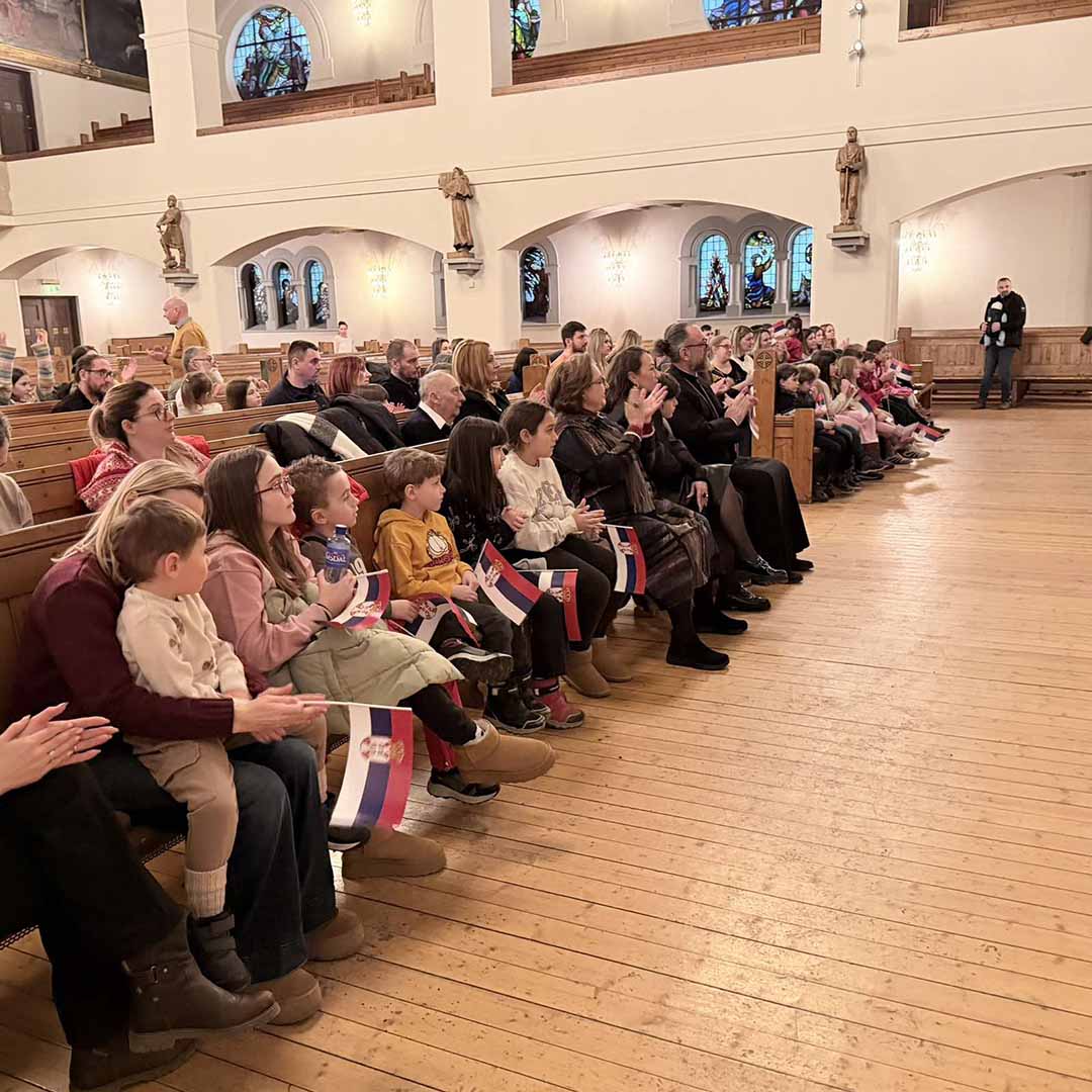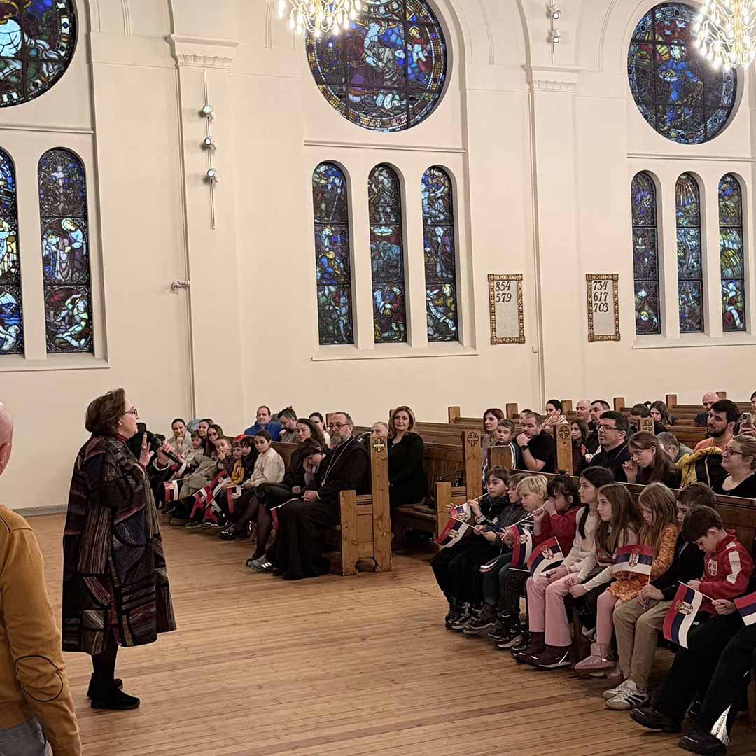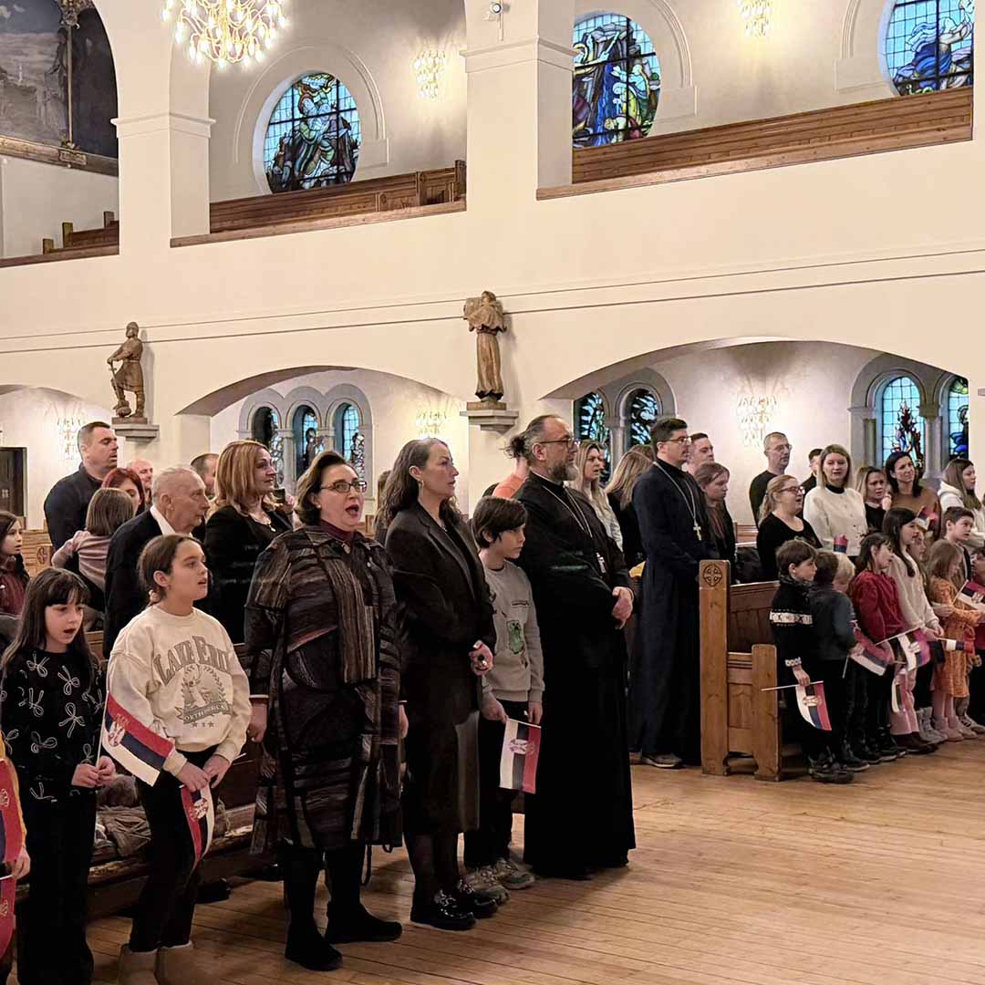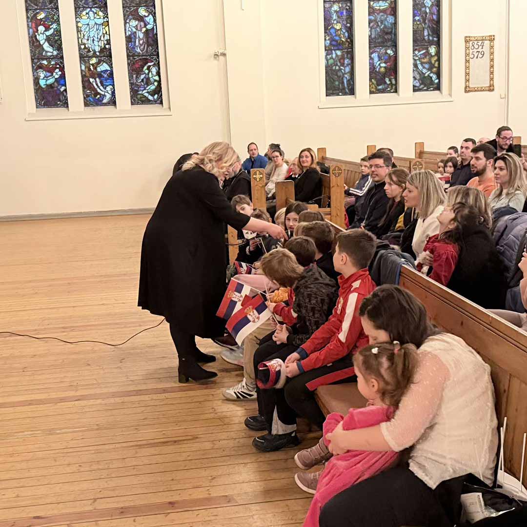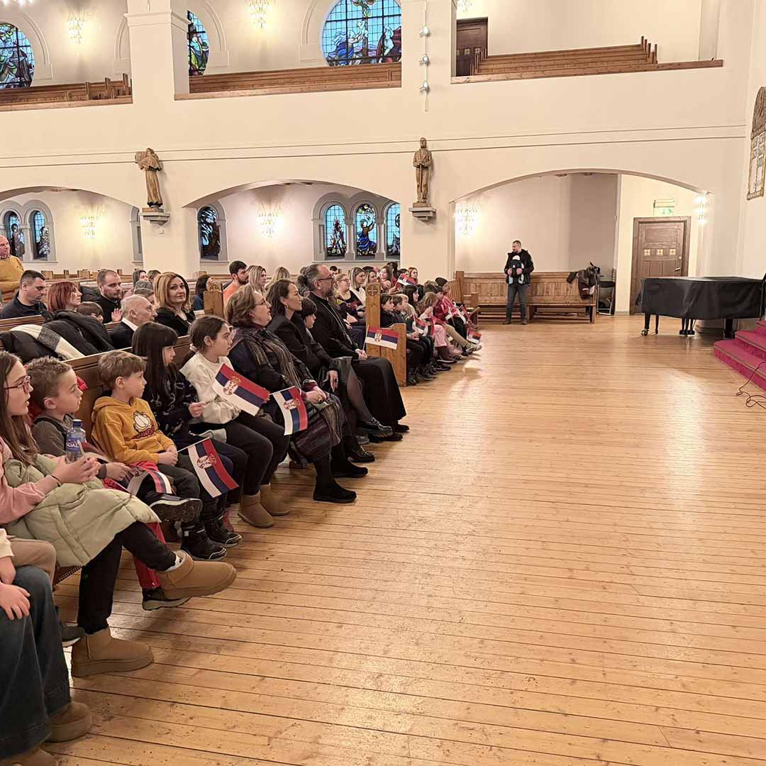 Овогодишњу прославу рођендана наше отаџбине посветили смо најмлађима у расејању. Програм је водио Лазар Крајновић, обратили су се беседама амбасадор др Јасмина Митровић-Марић и свештеник Драган Јованов који су своје сународнике упутили у двојаки значај овог великог празника као истинске, суштаствене везе цркве, државе и народа.