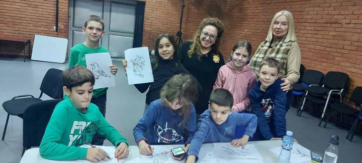 Маријана Петровић, еколог из Младих истраживача Београда је упознала полазнике радионице са птицама селицама које зиму проводе на Ратном острву, Бањичкој шуми и београдском приобаљу. Деца су бојила одштампане цртеже птица те су на тај начин додатно утврдила знање стечено из богате видео презентације.