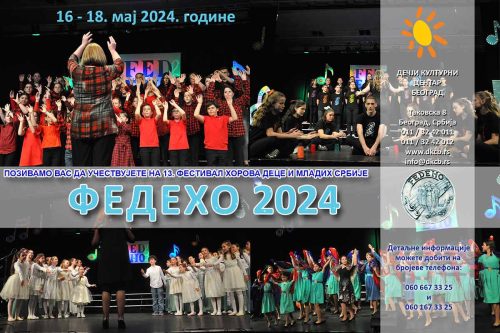 ФЕДЕХО 2024 – Распоред наступа и проба хорова Posted on 07/05/202415/05/2024 Видео: Предраг Недељковић Распоред наступа хорова Распоред проба хорова Posted in Обавештења, ФЕДЕХО.