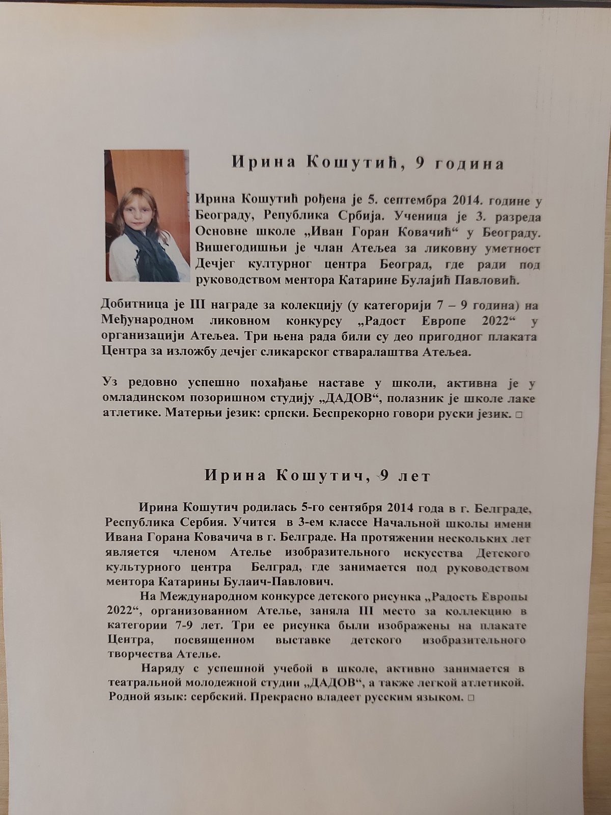 24. новембра се у Русији обележава Дан мајки и тим поводом је у Руском дому у Београду, полазница Ликовног атељеа Дечјег културног центра Београд Ирина Кошутић ( 9 година) изложила своје радове који су настали у нашем атељеу.