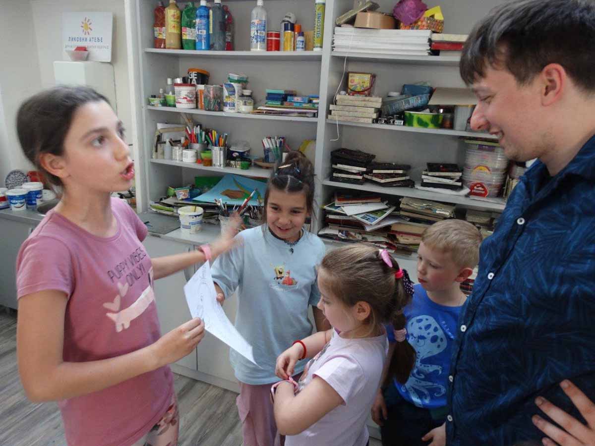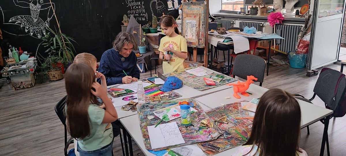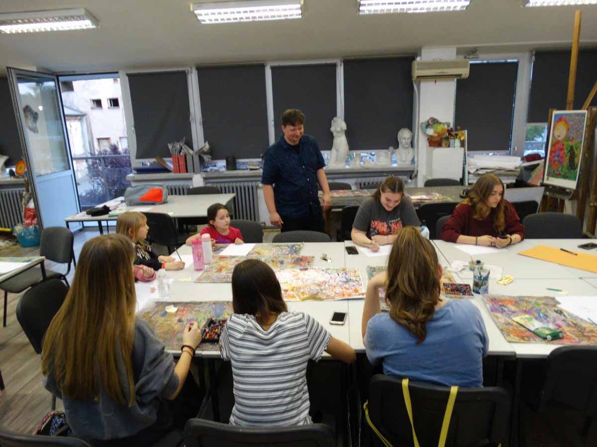 КРЕИРАЊЕ ЗАЈЕДНИЧКЕ БАЈКЕ – МАРКО ШЕРЕР СА ПОЛАЗНИЦИМА ЛИКОВНОГ АТЕЉЕА ДКЦБ