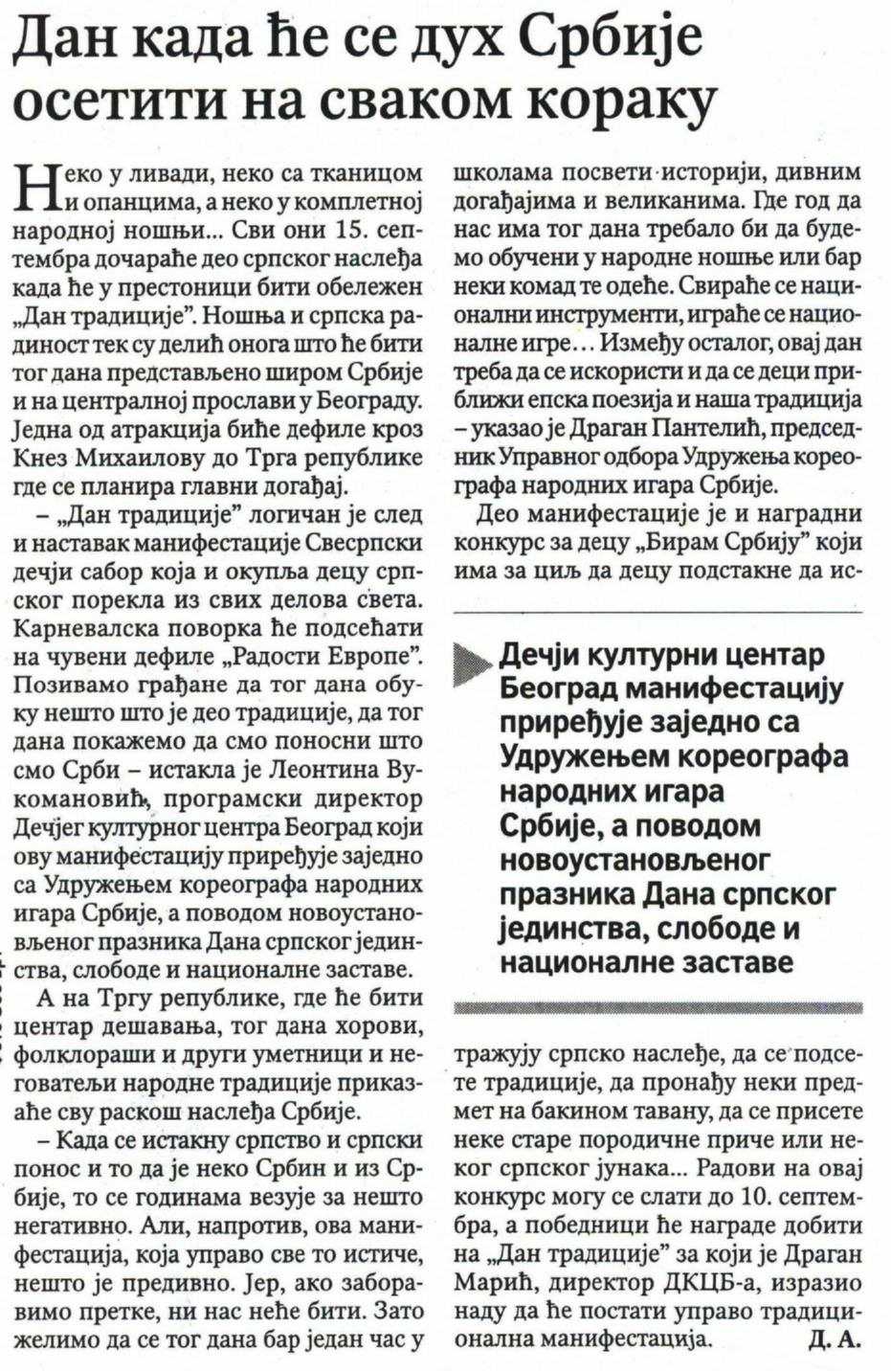 Медији о манифестацији Дан традиције и одржаној конференцији за медије