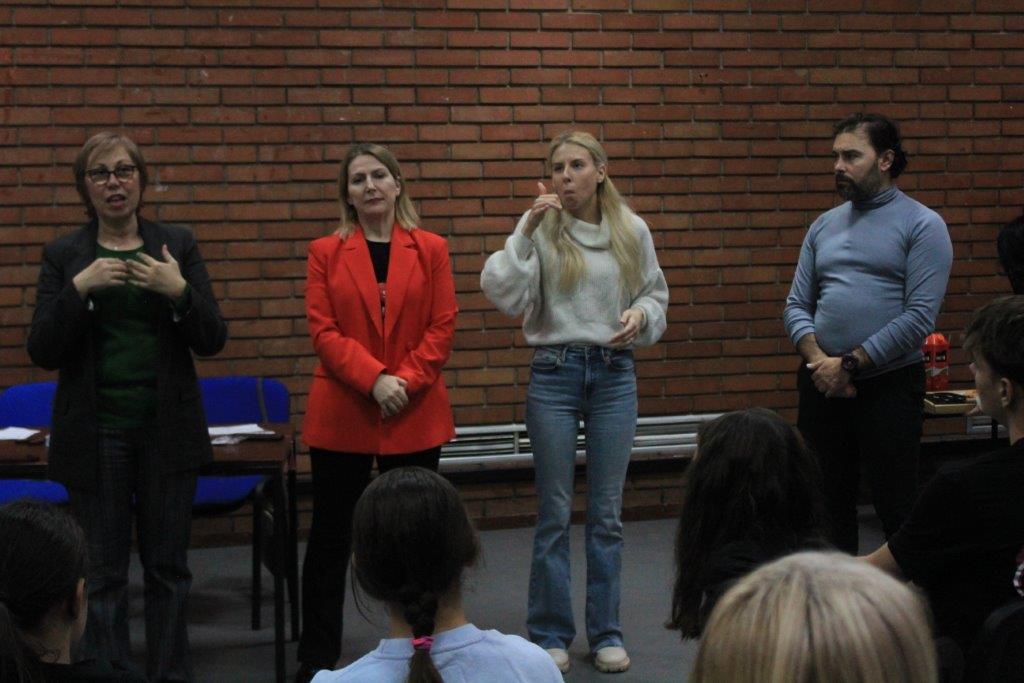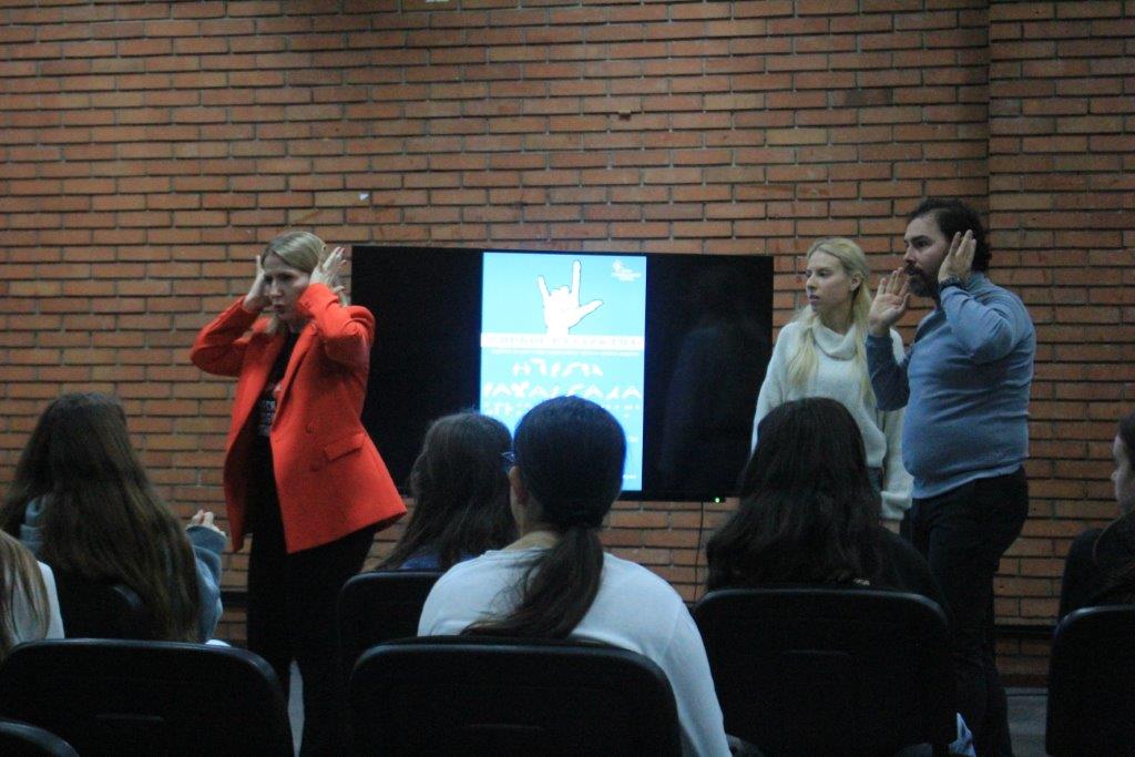 Учесници радионице имали су прилику да упознају свет особа које живе у тишини и да науче основе комуникације на знаковном језику. Кроз занимљив и интерактиван приступ, у свет српског знаковног језика увела их је Ирена Чепић, логопед и прошлогодишња добитница награде „Златно сунце“, коју Дечји културни центар Београд додељује појединцима који дају значајан допринос развоју дечје креативности и стварању услова за свестрани развој дечјих потенцијала. Учесници су се опробали у комуникацији рукама, учећи о важности положаја тела, израза лица и јасних покрета при преношењу поруке. Програм су подржали и наставници Школе „Стефан Дечански“ – професор ликовне културе Владимир Магделинић и наставница, уједно и тумач за знаковни језик, Софија Жикић. Посебан допринос сусрету дао је ученик те школе, Давид, који је поделио своју личну, емотивну и инспиративну причу.