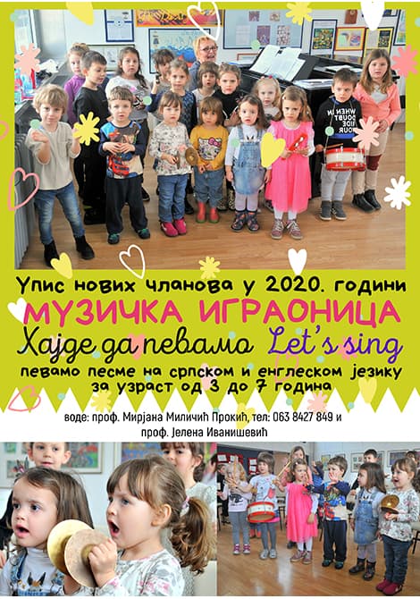Музичку играоницу води проф Мирјана Миличић Прокић дипломирани музички педагог