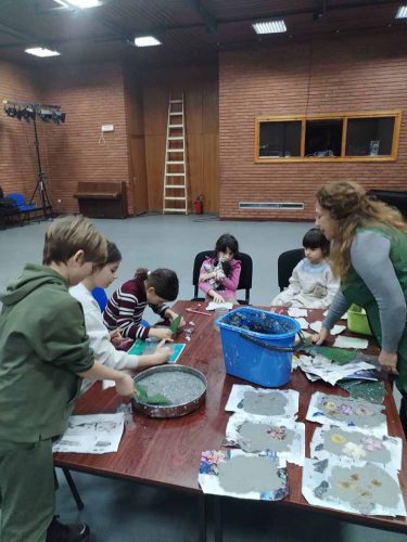 Током радионице, деца су правила рециклирани папир, упознала се са основама рециклаже и њеном улогом у заштити природе, а затим су пастелима цртала на папирима које су сама израдила. На мокре папире утиснути су пресовани делови биљака и свећа.