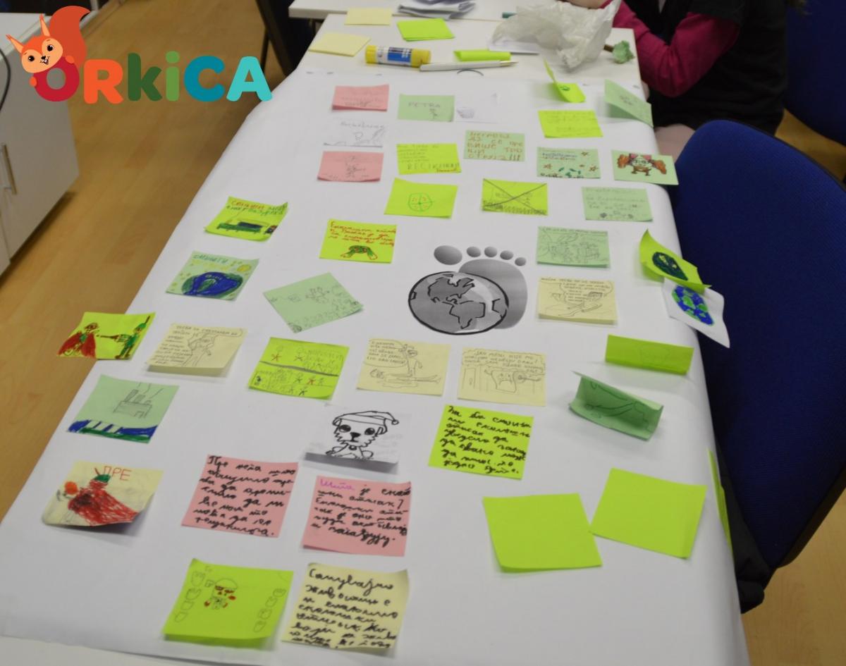 Прошлог четвртка смо са другарима кроз глуму и пантомиму разматрали исправне и погрешне поступке према непознатим псима. Потом смо говорили о еколошком отиску, а наши малишани су били инспирисани темом и написали доста идеја како можемо помоћи планети и смањити еколошки отисак!