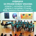 АУДИЦИЈА ЗА ПРИЈЕМ НОВИХ ЧЛАНОВА четвртак, 1. септембар у 18 часова четвртак, 8 септембар у 18 часова ДКЦБ, Таковска 8, Музички студио 407 Диригент: Невена Ивановић Контакт телефон: 060 667 33 25