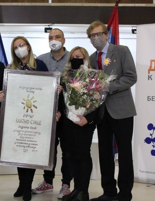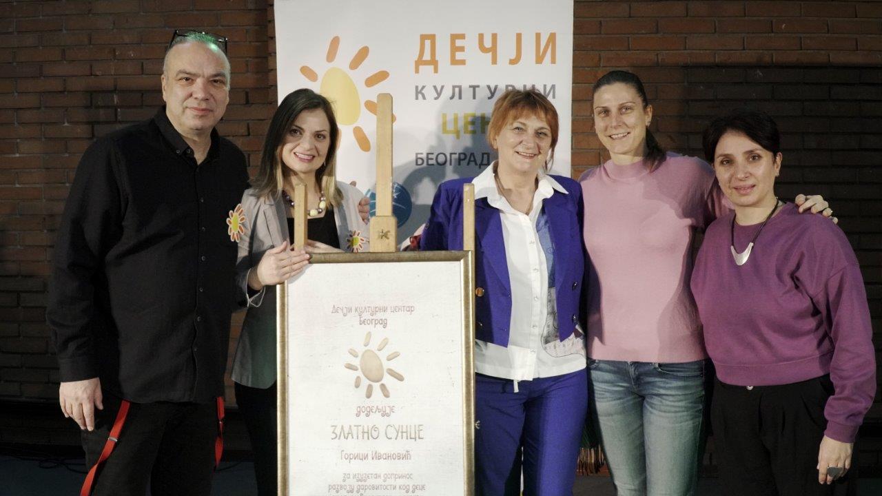 Дечји културни центар Београд установио је плакету ,,Златно сунце”, специјално признање којим се жели скренути пажња јавности на вредне и предане појединце који се баве децом, вредно раде и стварају за децу, а који се истичу ентузијазмом, посвећеношћу, иновативношћу или високим професионалним резултатима.