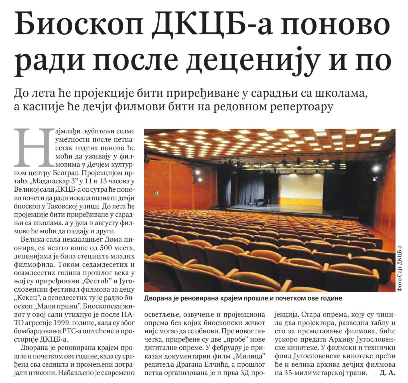 Politika – Bioskop DKCB- a ponovo radi posle deceniju i po