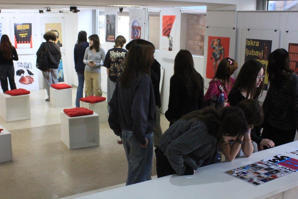 Ученици Школе за дизајн из Београда, у пратњи професорке Иване Поповић, посетили су изложбу где су, након стручног вођења, имали прилику да детаљно разгледају поставку. Том приликом упознали су се са креативним изразом и ауторским приступима у изради плаката својих старијих колега из матичне школе, као и ученика Средње школе за обликовање и фотографију из Љубљане.