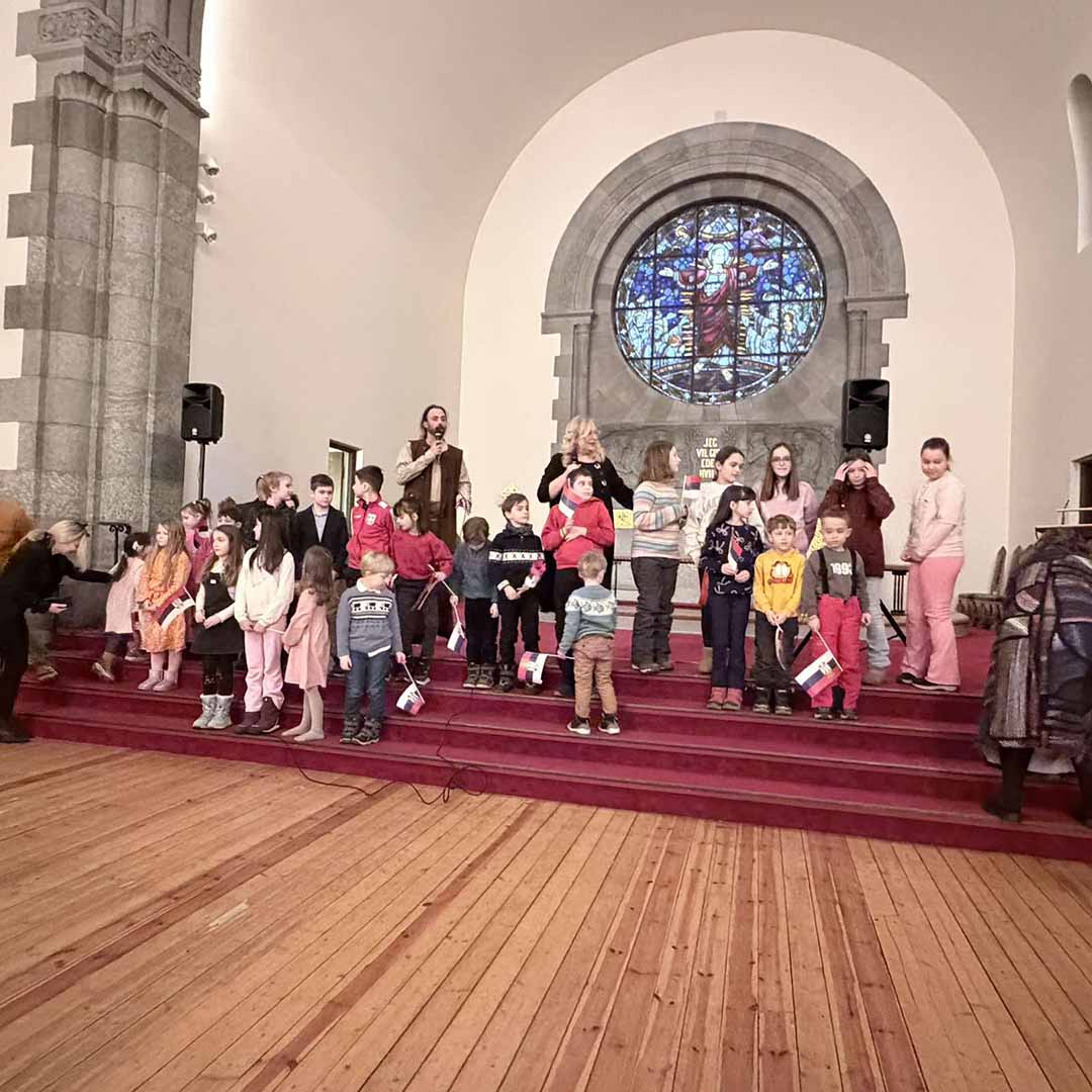 Многи су имали прилику да по први пут чују причу о настанку српске државе и вредностима којима нас уче славни преци. Програм у Ослу је водио Лазар Крајновић, а присутнима поред уметника из Београда обратили су се беседама амбасадор др Јасмина Митровић-Марић и свештеник Драган Јованов. „Они су своје сународнике упутили у двојаки значај овог великог празника као истинске, суштаствене везе цркве, државе и народа. Иако је програм намењен најмлађем расејању радост, радозналост и понос показали су и родитељи, учитељи, свештенство и сви присутни који су постали део ове јединствене и, како сами сведоче, изузетне прославе рођендана своје отаџбине”, додали су ДКЦБ.