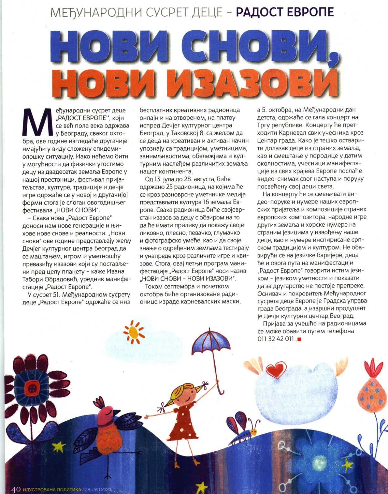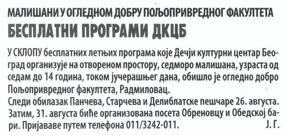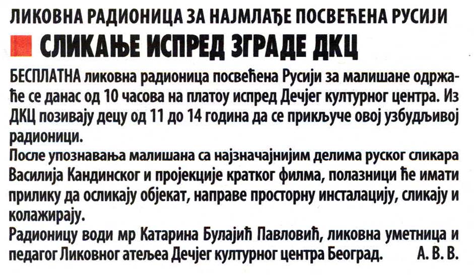 PRESS CLIPPING – Бесплатне летње радионице у ДКЦБ